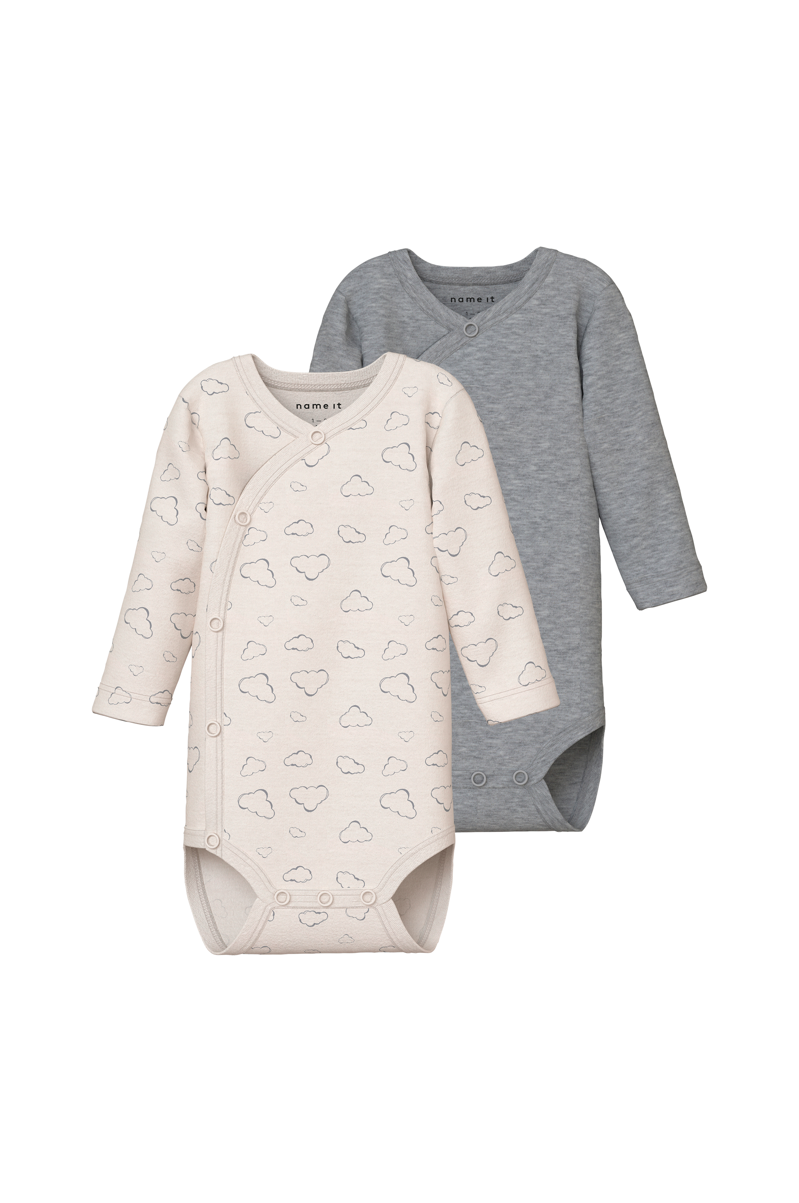 • 2-pack, långärmade bodys i bomull• Rund halsringning• Omlottdesign med tryckknappar fram och i grenen