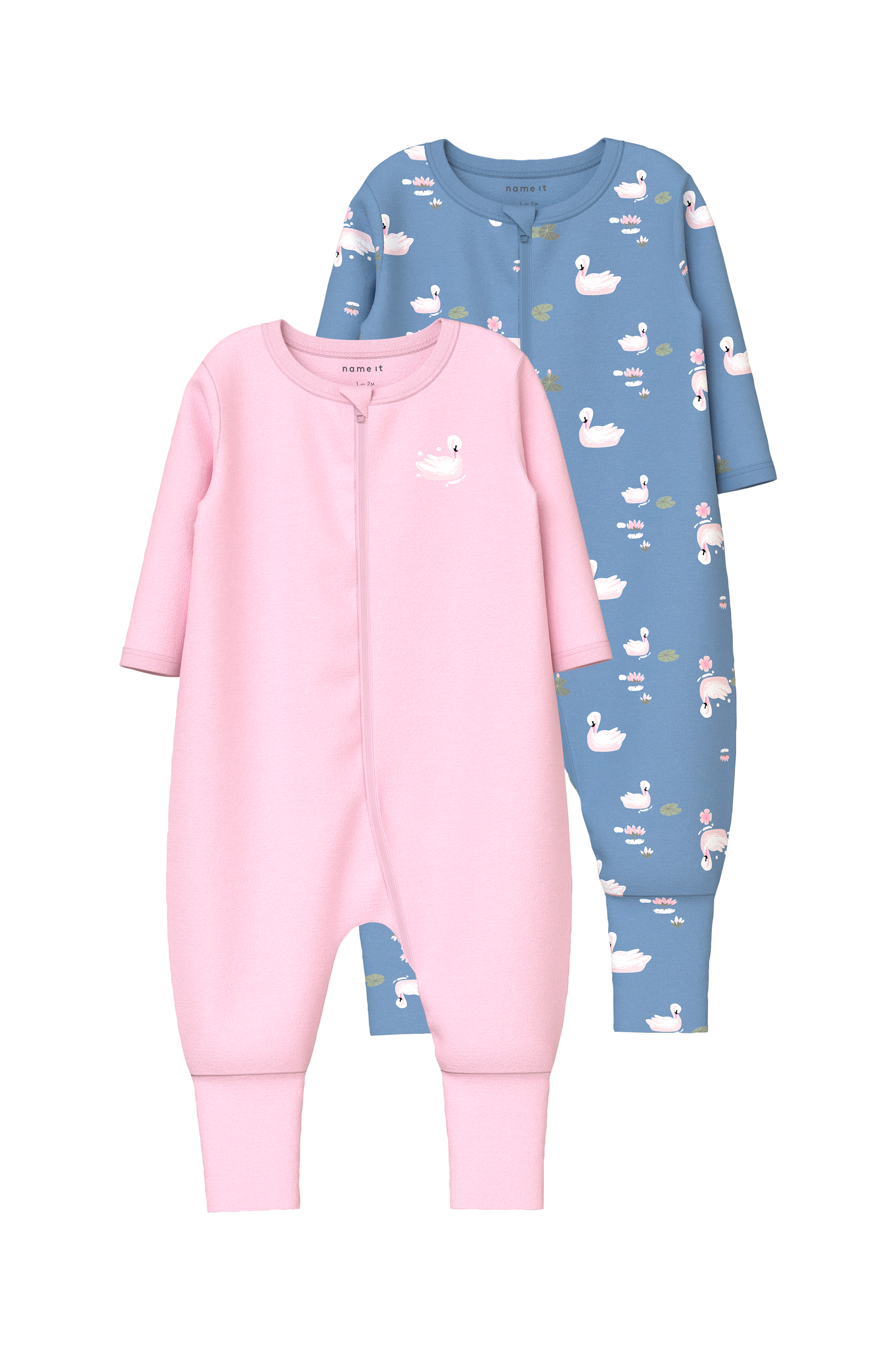 • 2-pack pyjamas i mjuk bomull• Rund, ribbad halsringning• Dragkedja hela vägen fram med hakskydd• Muddar i bensluten