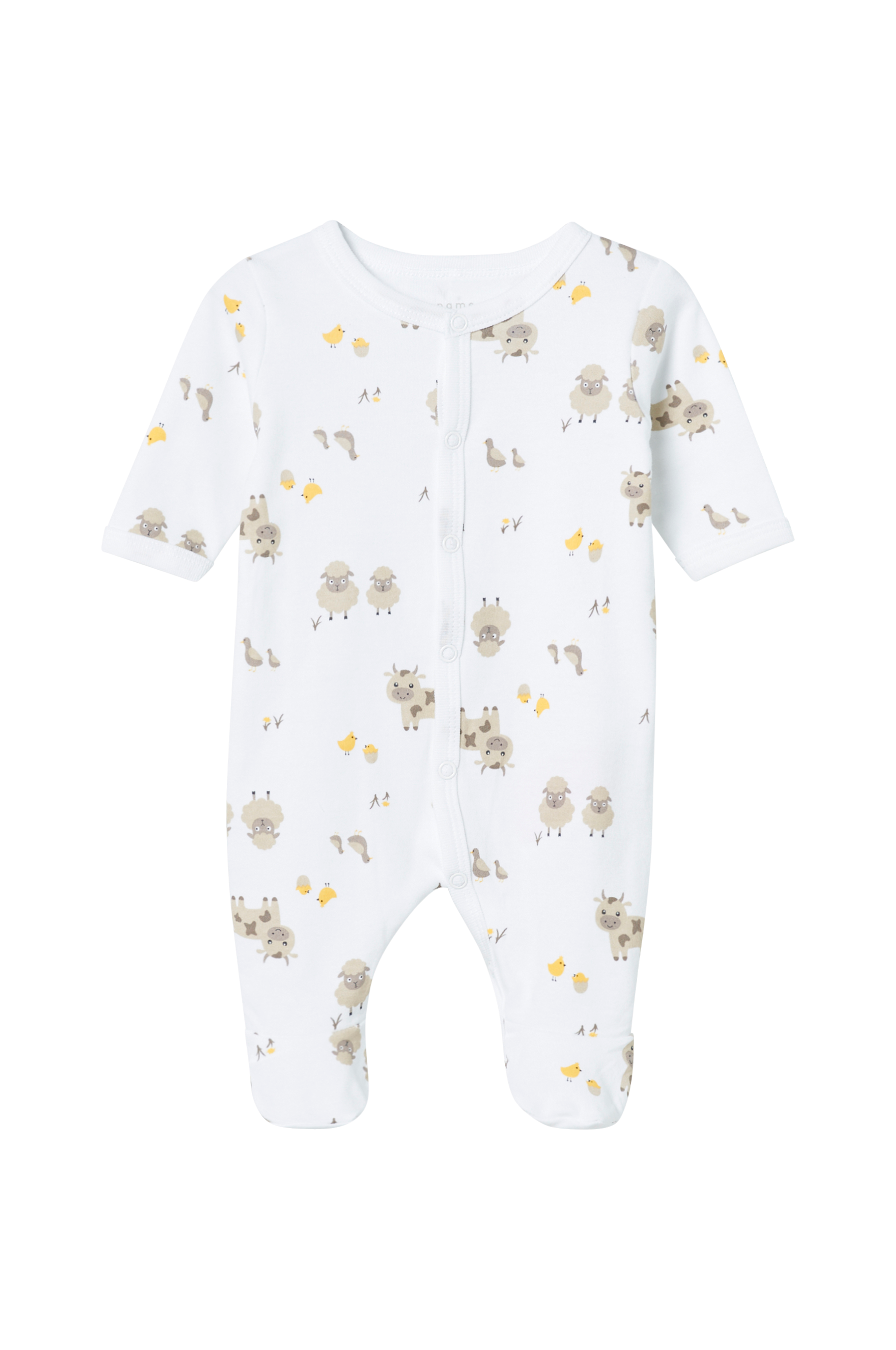 • Gjord av mjuk bomullstrikå med tryckt mönster • Tryckknappar fram • Hel fot • Produkten innehåller ekologisk bomull som är odlad utan kemiska bekämpningsmedel, konstgödsel och genmodifierade grödor (GMO). Det innebär en mer hälsosam arbetsmiljö för bönder och bättre jordmån.