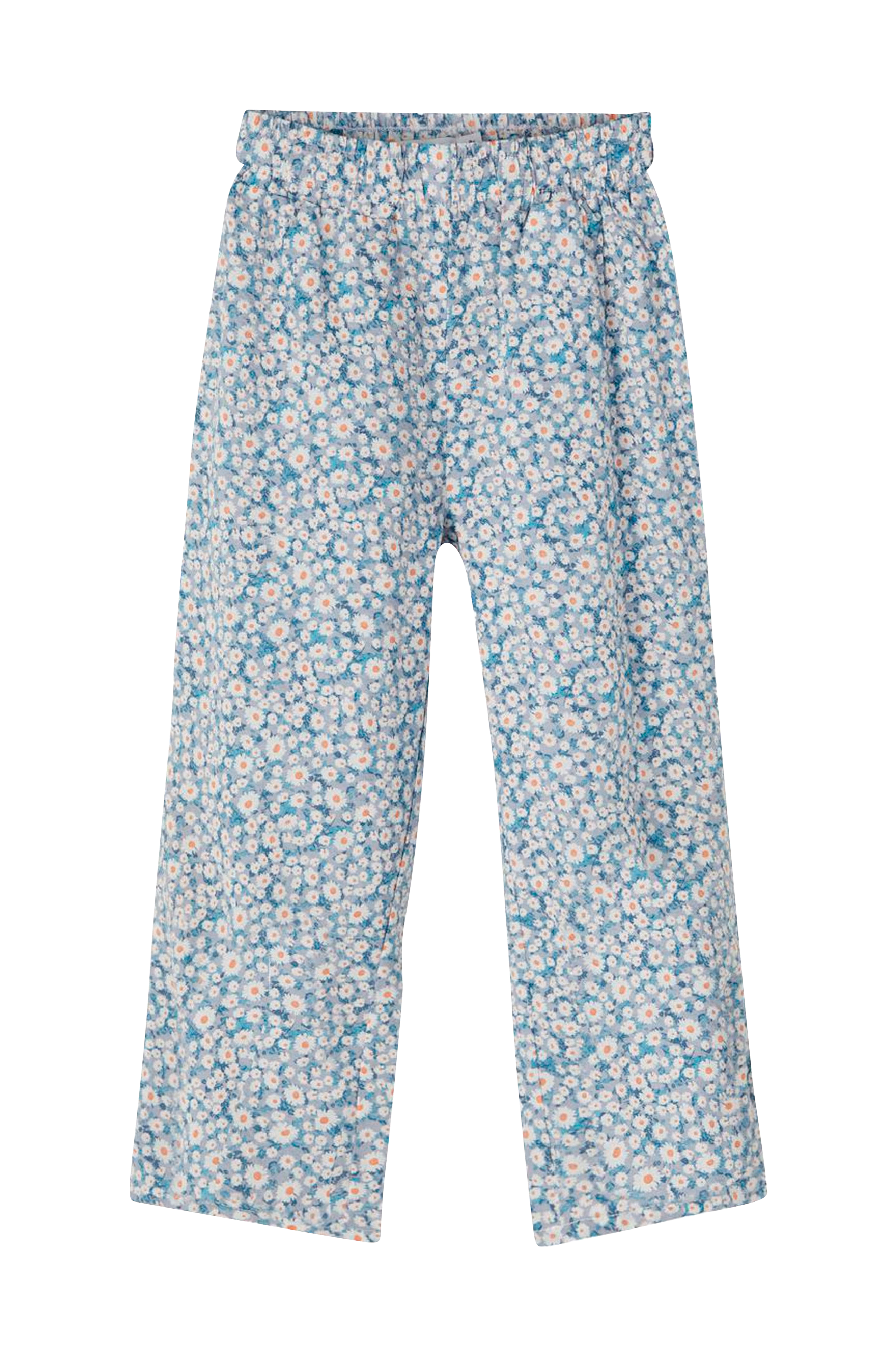 Byxor i lätt, vävd bomull med struktur i tyget och tryckt blommönster. Elastisk midja och vida ben.