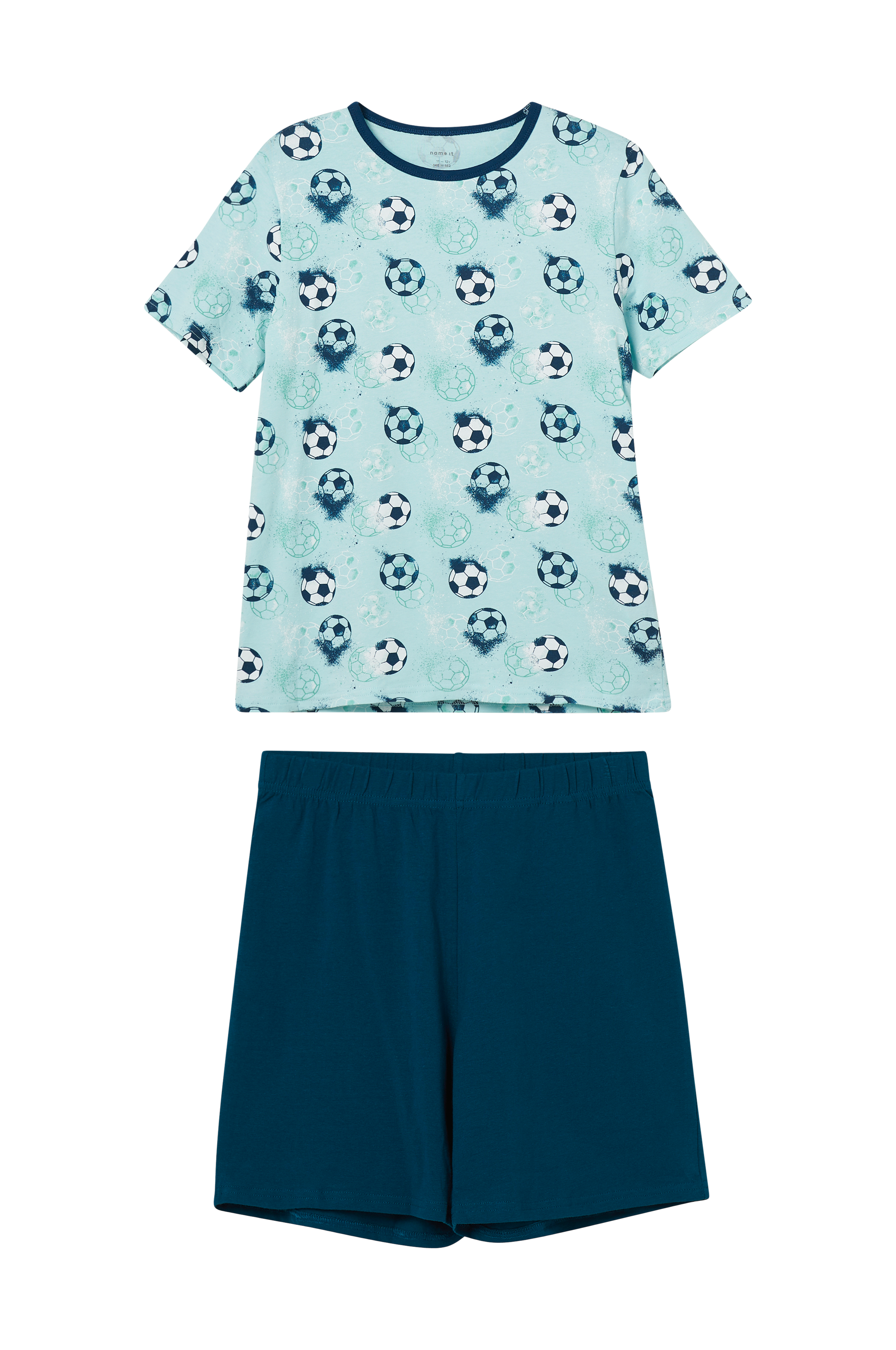 • Set i stretchig bomullstrikå• Mönstrad t-shirt med rund halsringning• Shorts med elastisk midja