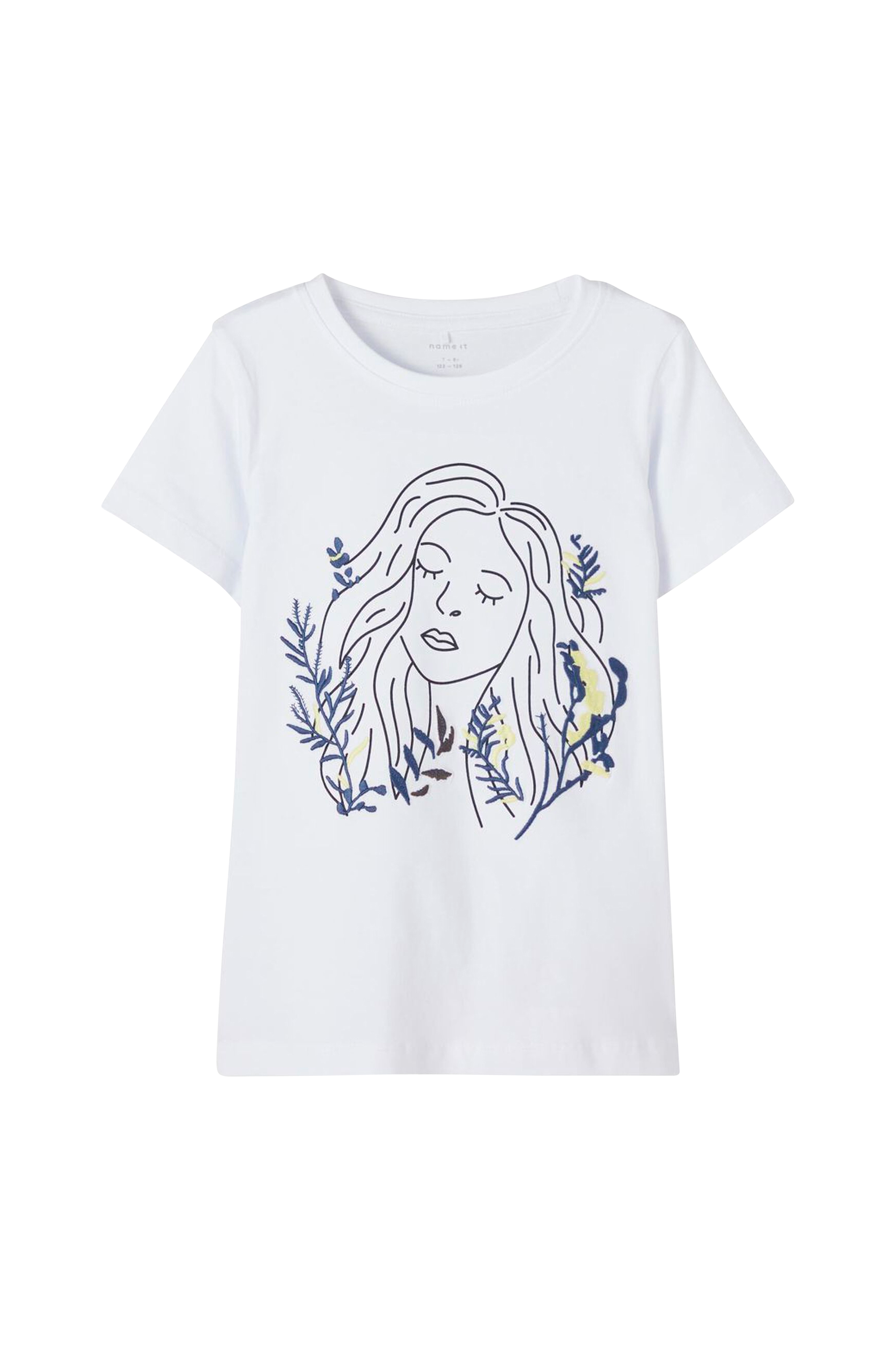 Kortärmad topp i ekologisk bomull med tryck fram. Broderade detaljer.