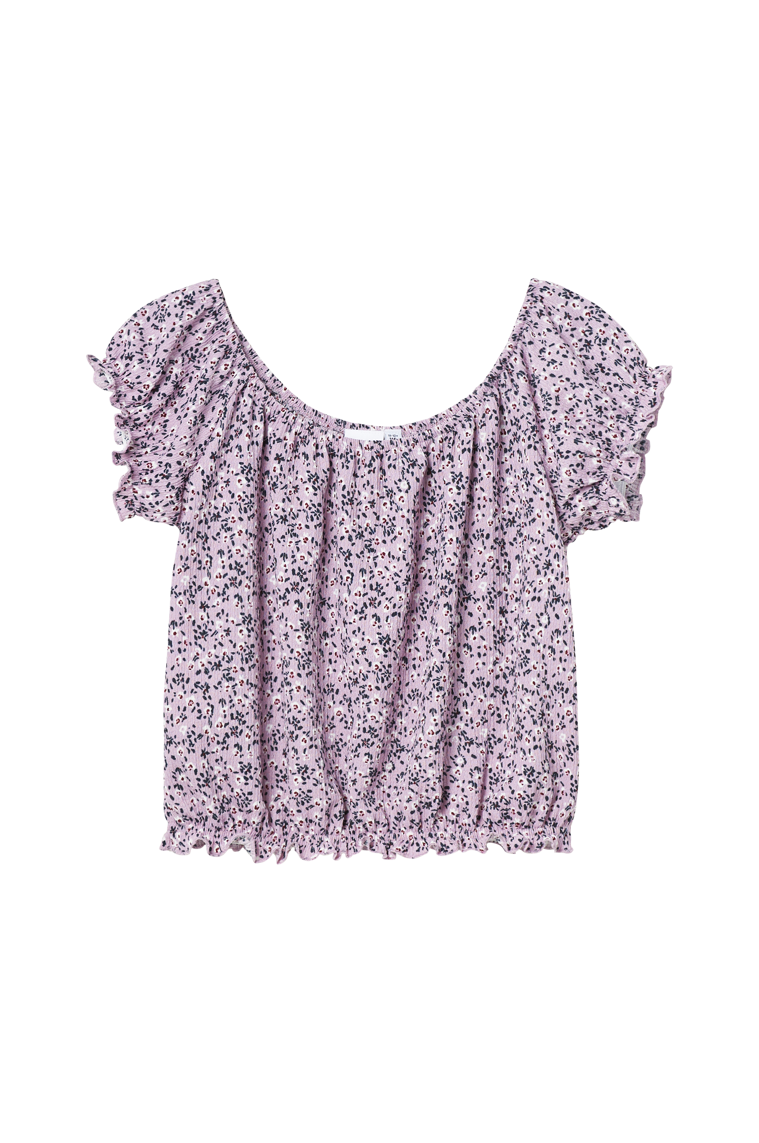 • Croppad modell• Elastisk halsringning• Volang i ärmsluten och nedtill