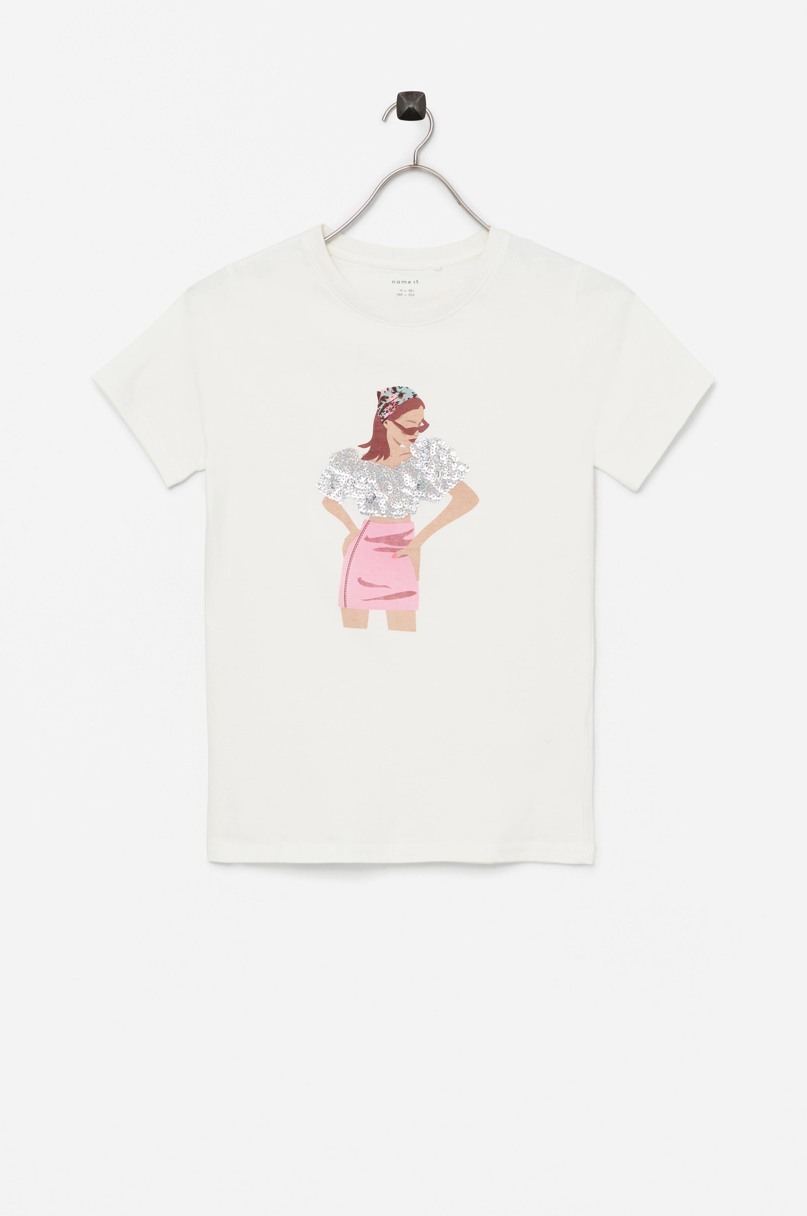 • Korta ärmar• Tryck med paljetter fram• Gjord av bomullstrikå