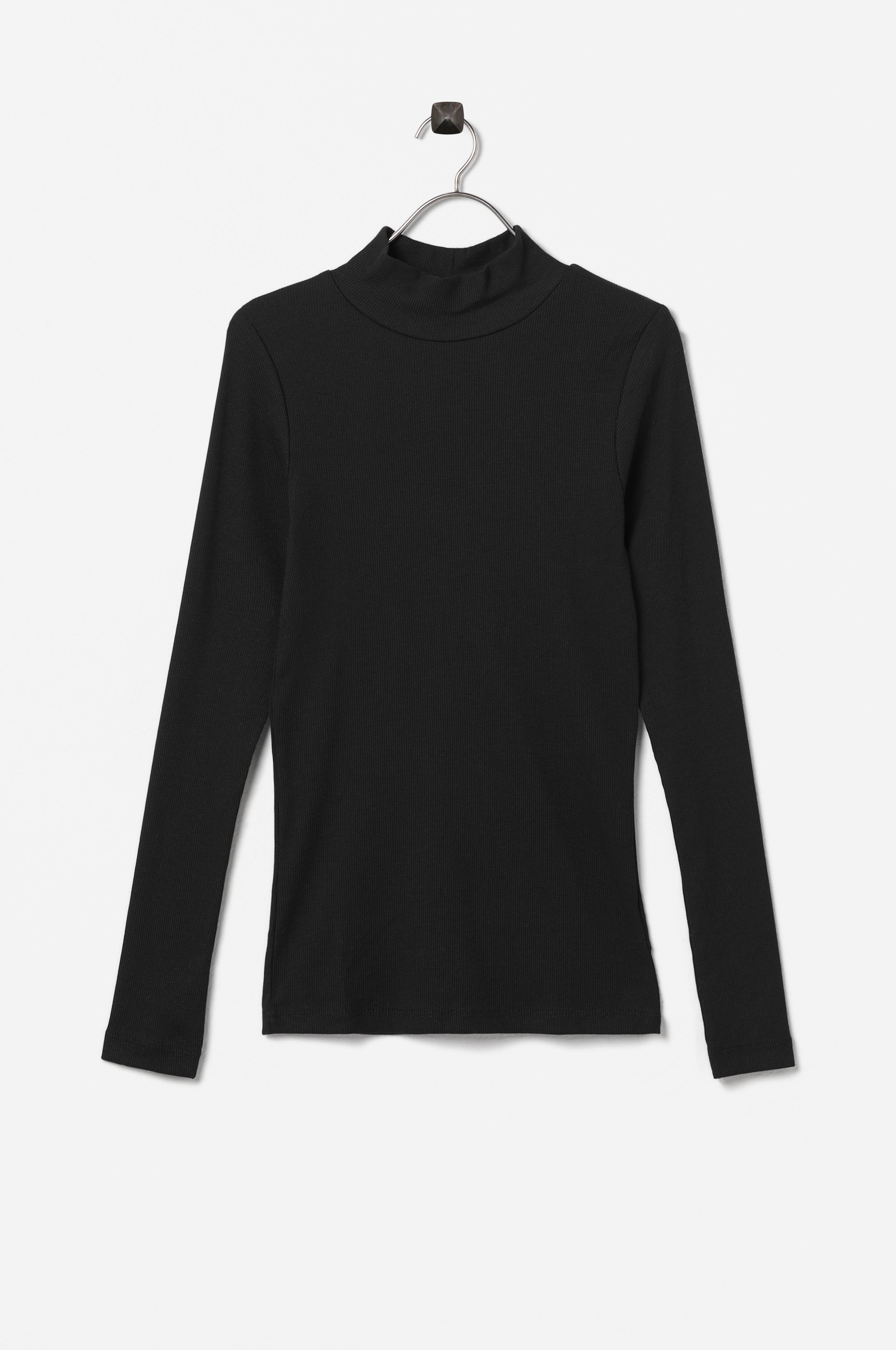 Långärmad topp med ståkrage. Gjord i smalribbad, skön bomullstrikå.