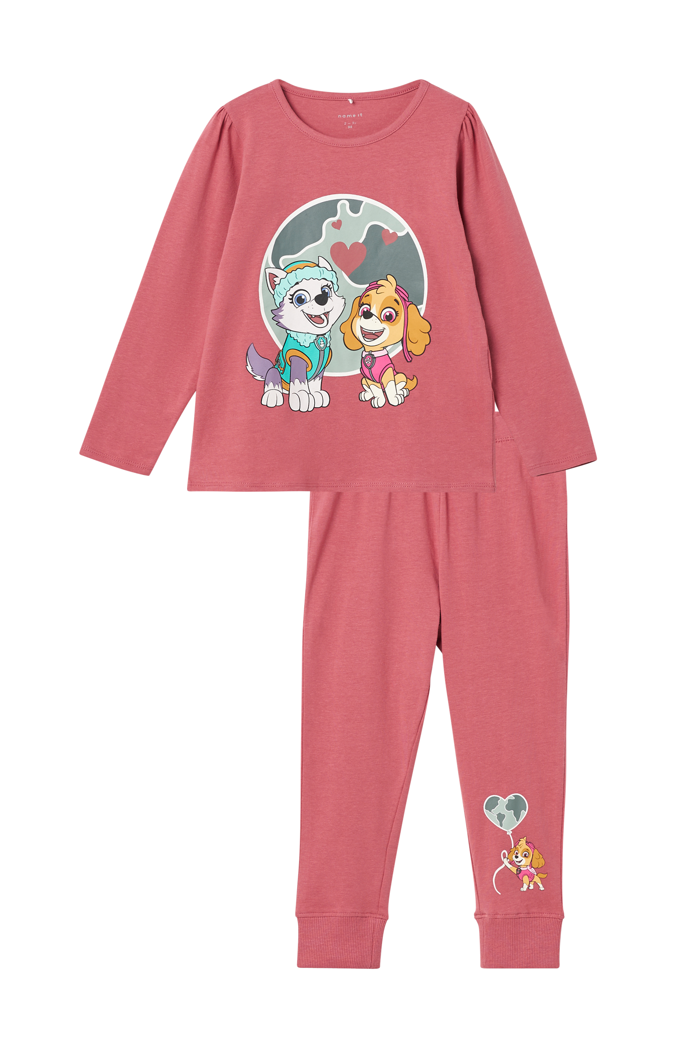 Pyjamasset i mjuk bomullstrikå med stretch. Långärmad topp med rund halsringning, tryck fram och liten puff på ärmen. Byxorna har elastisk midja, tryck på ena benet och ribbmuddar i bensluten.