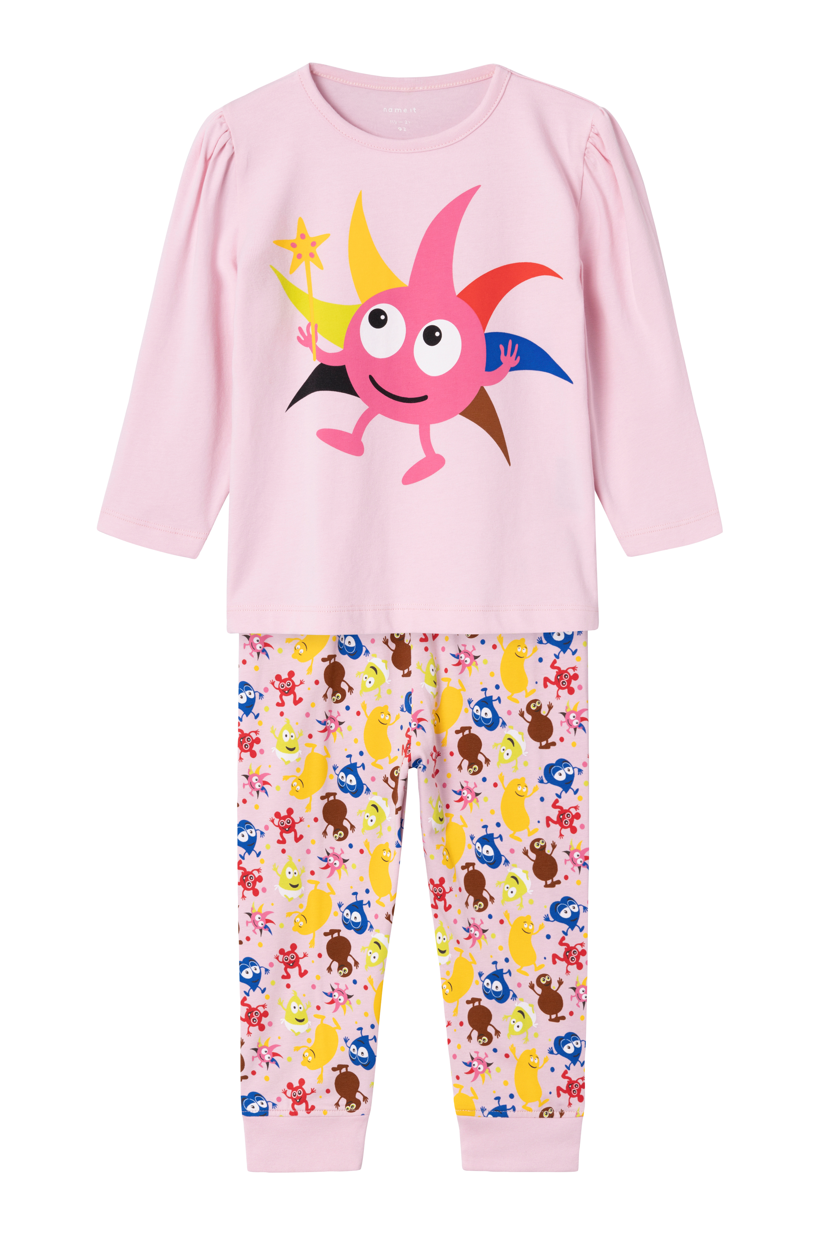 • Tvådelat set i bomullstrikå• Långärmad topp med tryck• Mönstrade leggings• Ribbmuddar i bensluten