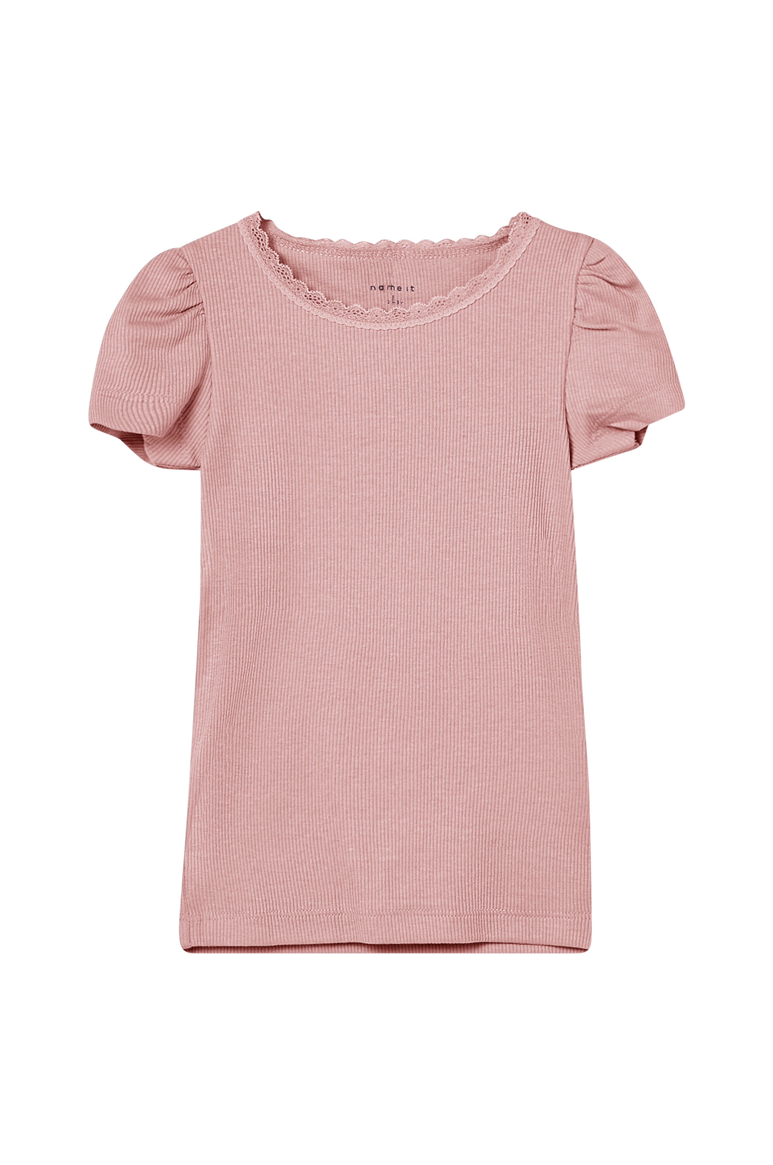 • Ribbad, stretchig trikå • Ribbad halsringning med spetskant runt om • Kort puffärm • Produkten innehåller ekologisk bomull som är odlad utan kemiska bekämpningsmedel, konstgödsel och genmodifierade grödor (GMO). Det innebär en mer hälsosam arbetsmiljö för bönder och bättre jordmån.