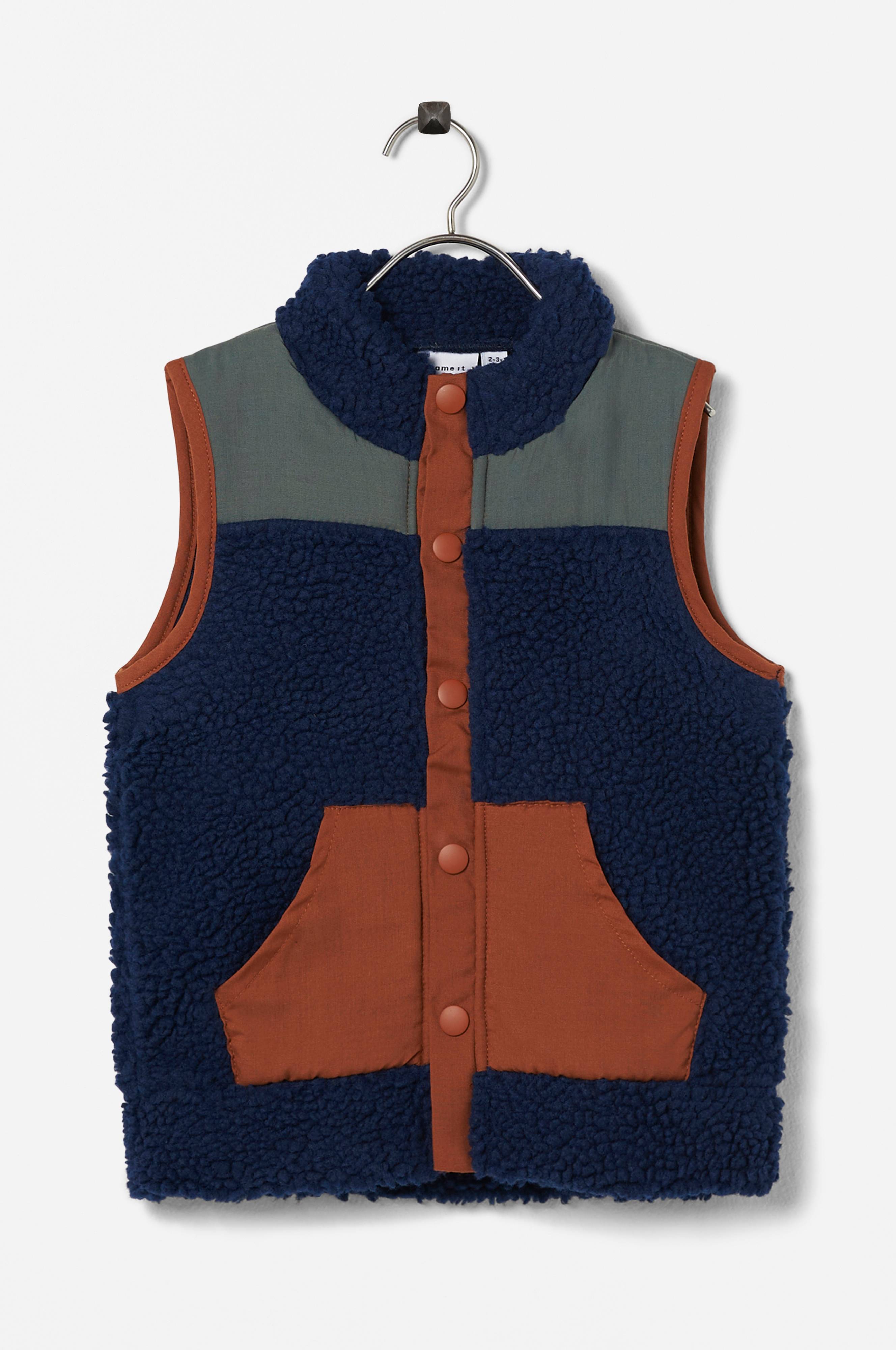 • Väst i teddyfleece med vävda partier• Tryckknappar• Två fickor fram