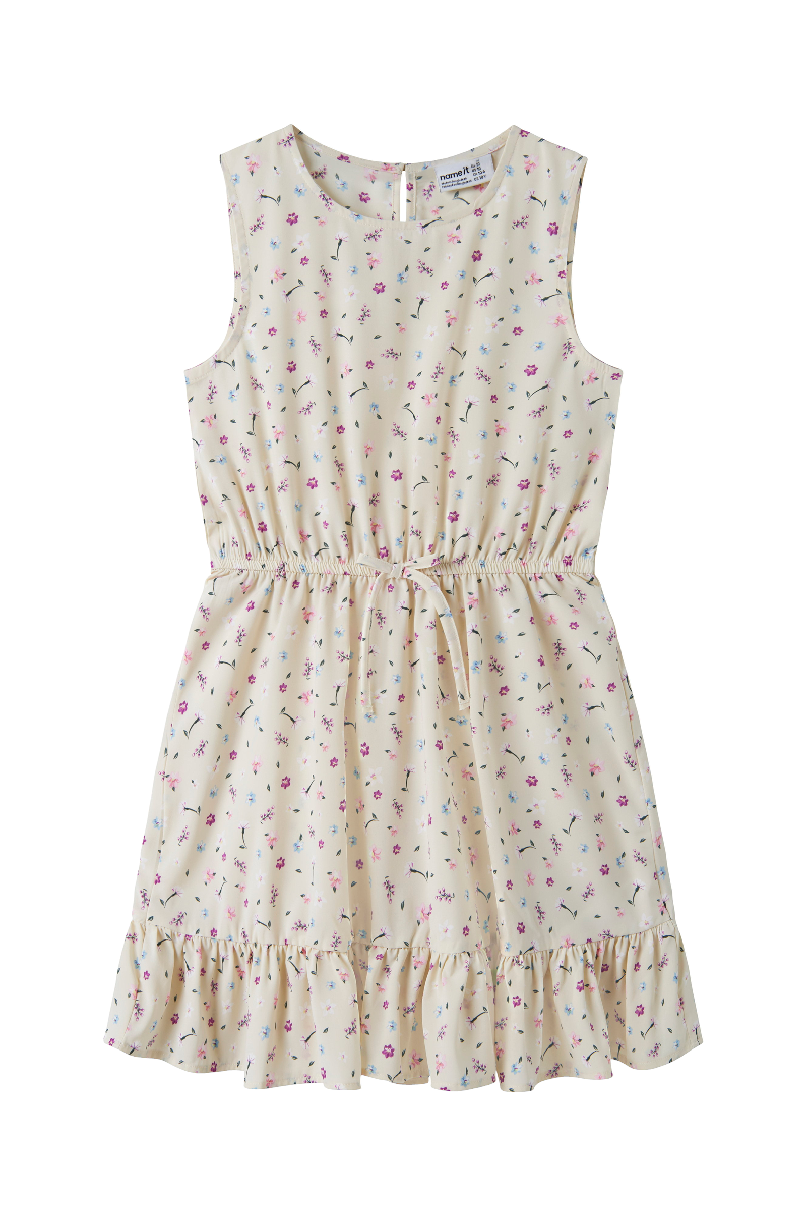• Ärmlös modell• Sprund med knapp i nacken• Elastisk midja med knytning• Volang nedtill• Produkten innehåller återvunnet material som har tagits tillvara för att minska mängden avfall, samtidigt som nya resurser inte har förbrukats.
