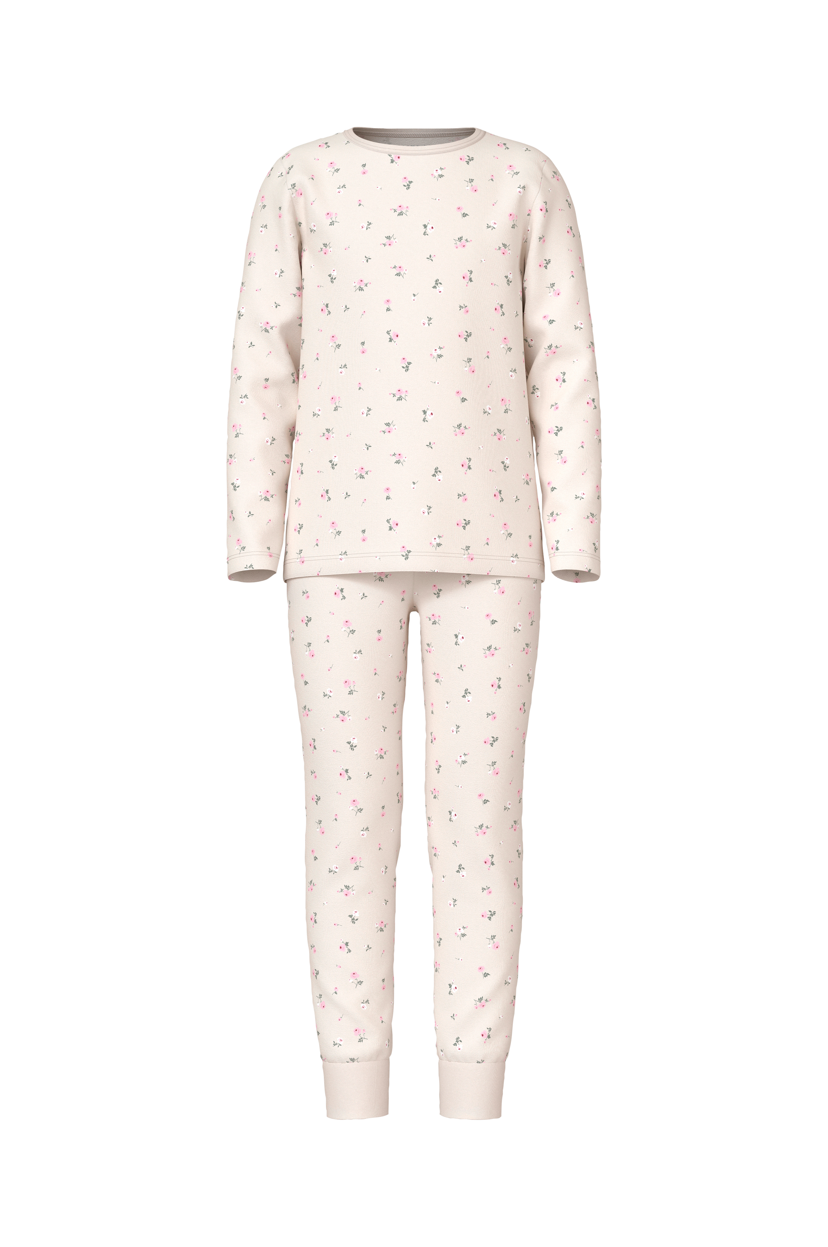 • 2-delad, mjuk pyjamas i bomull• Långärmad t-shirt med rund halsringning• Byxor med resårmidja och ribbmuddar i bensluten