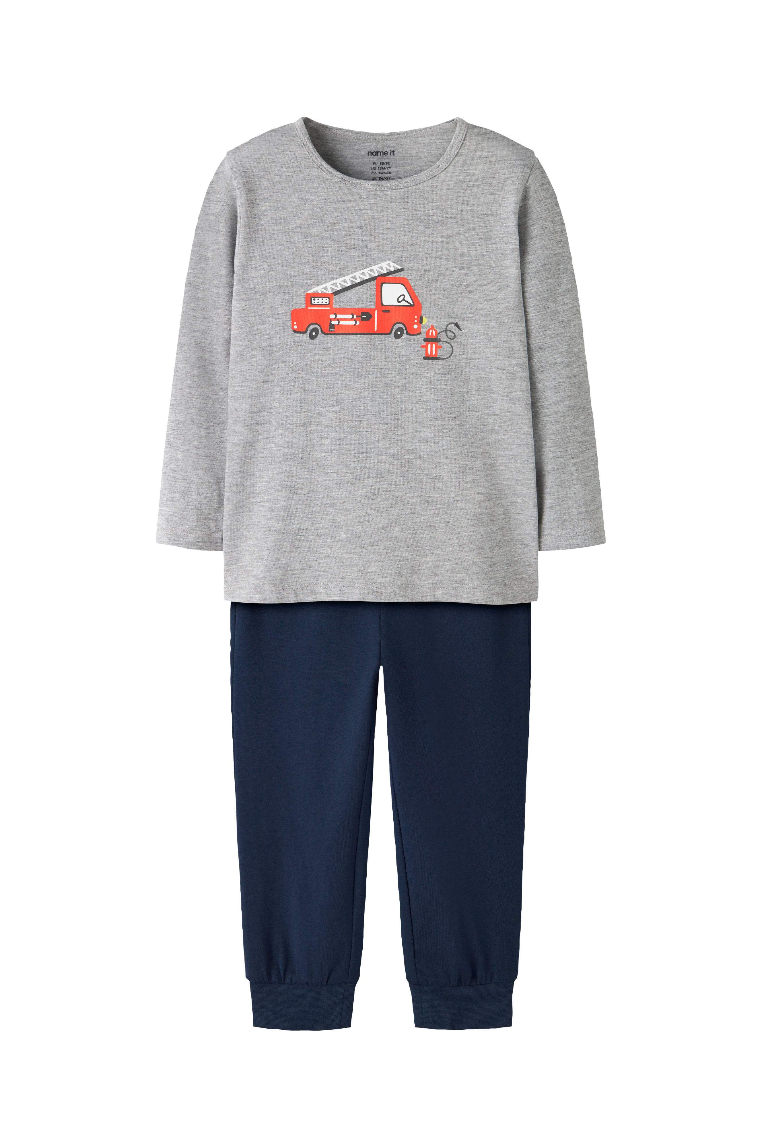 • Mjuk pyjamas i bomullstrikå• Långärmad t-shirt med rund halsringning och dekorativt tryck• Byxor med resår i midjan och muddar i bensluten