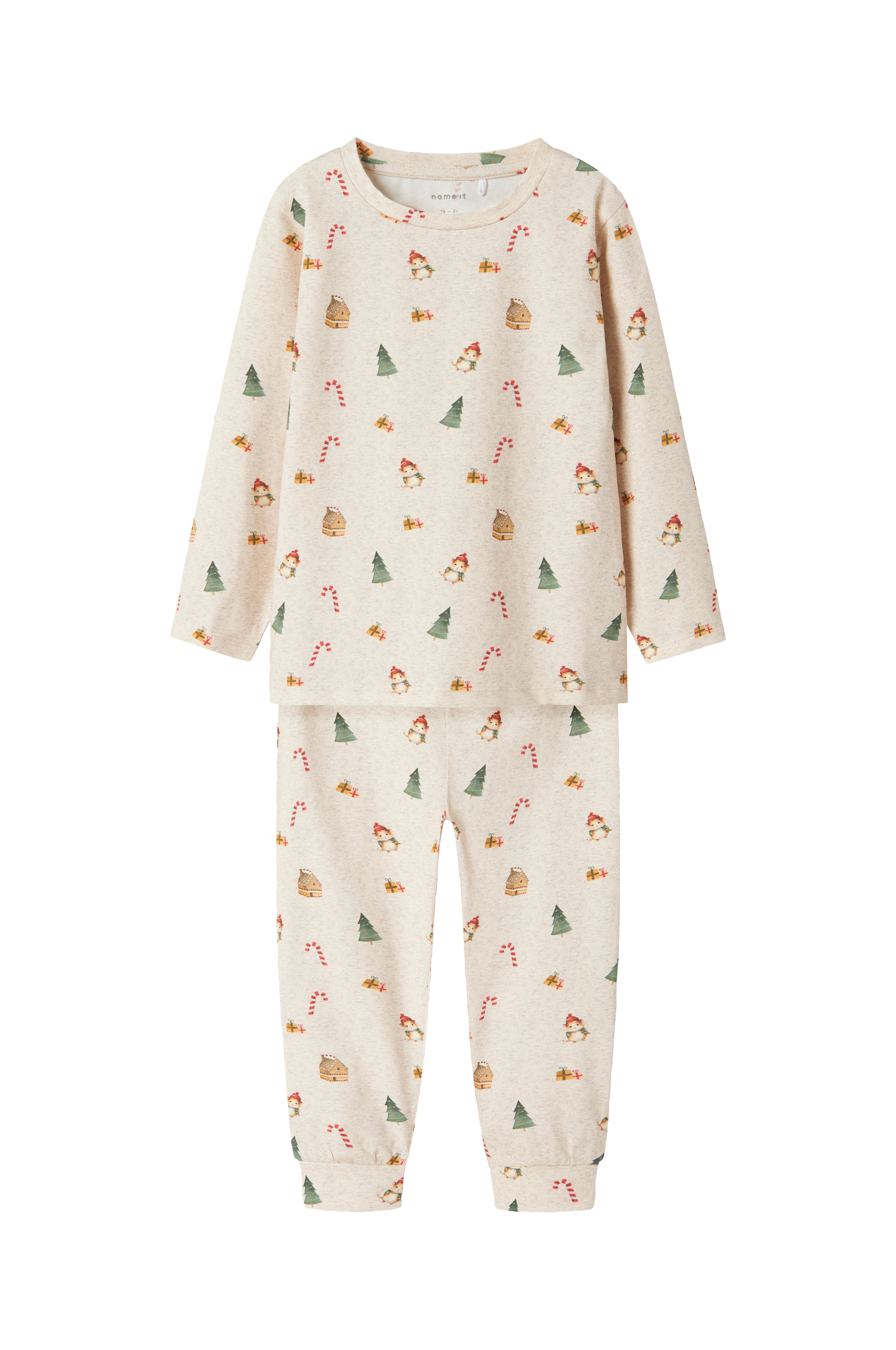 • Mjuk pyjamas i bomullstrikå med julmönster