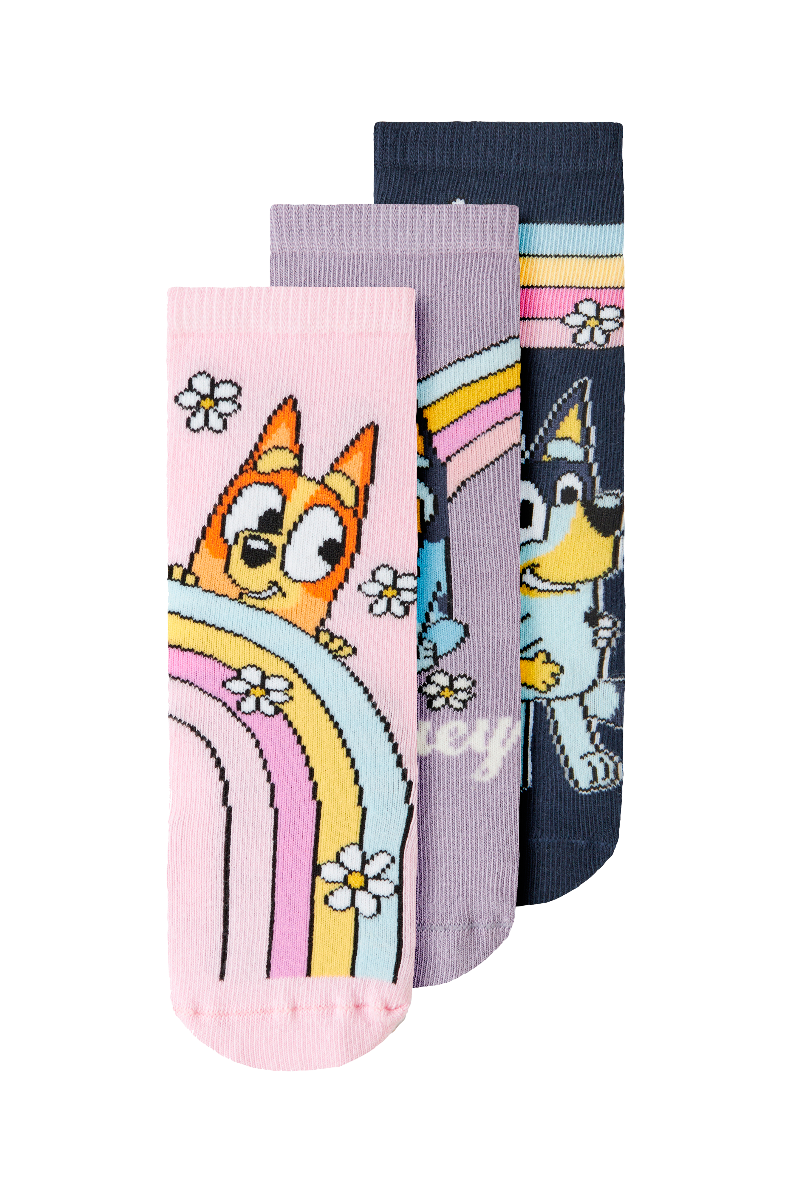 • Mjuka strumpor med olika motiv• Tre par