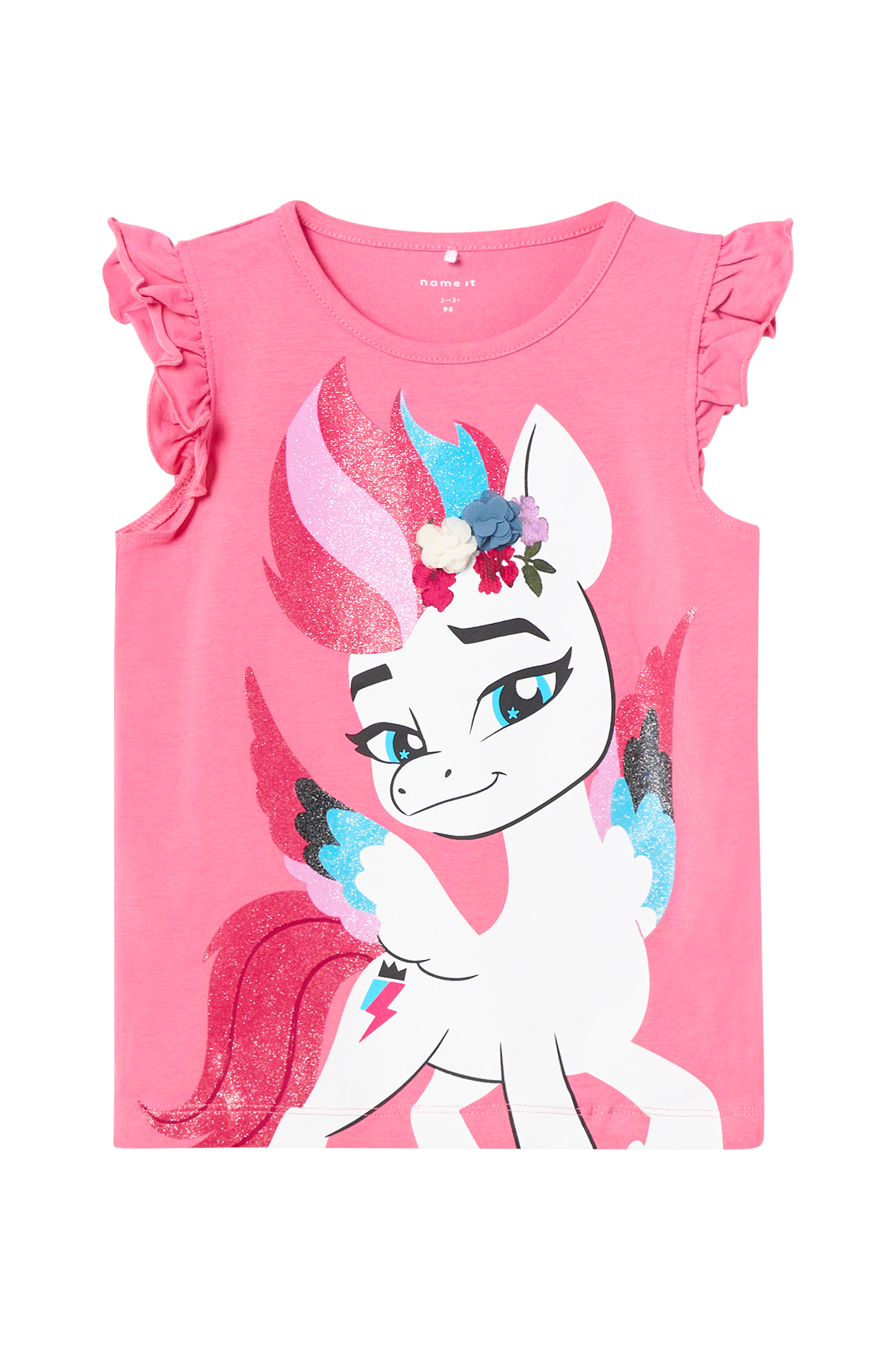 • Ärmlös topp med volanger på axlarna