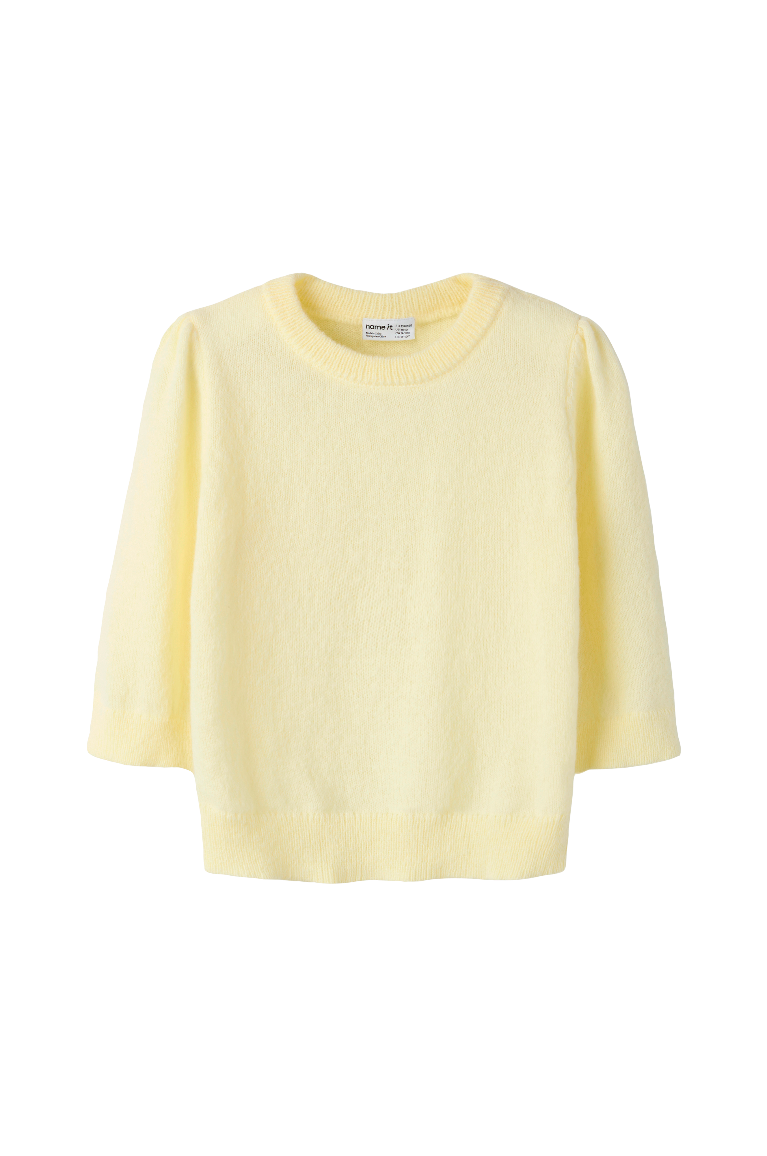 • Mjuk, finstickad tröja• Rund halsringning• 3/4-långa puffärmar• Ribbstickade detaljer