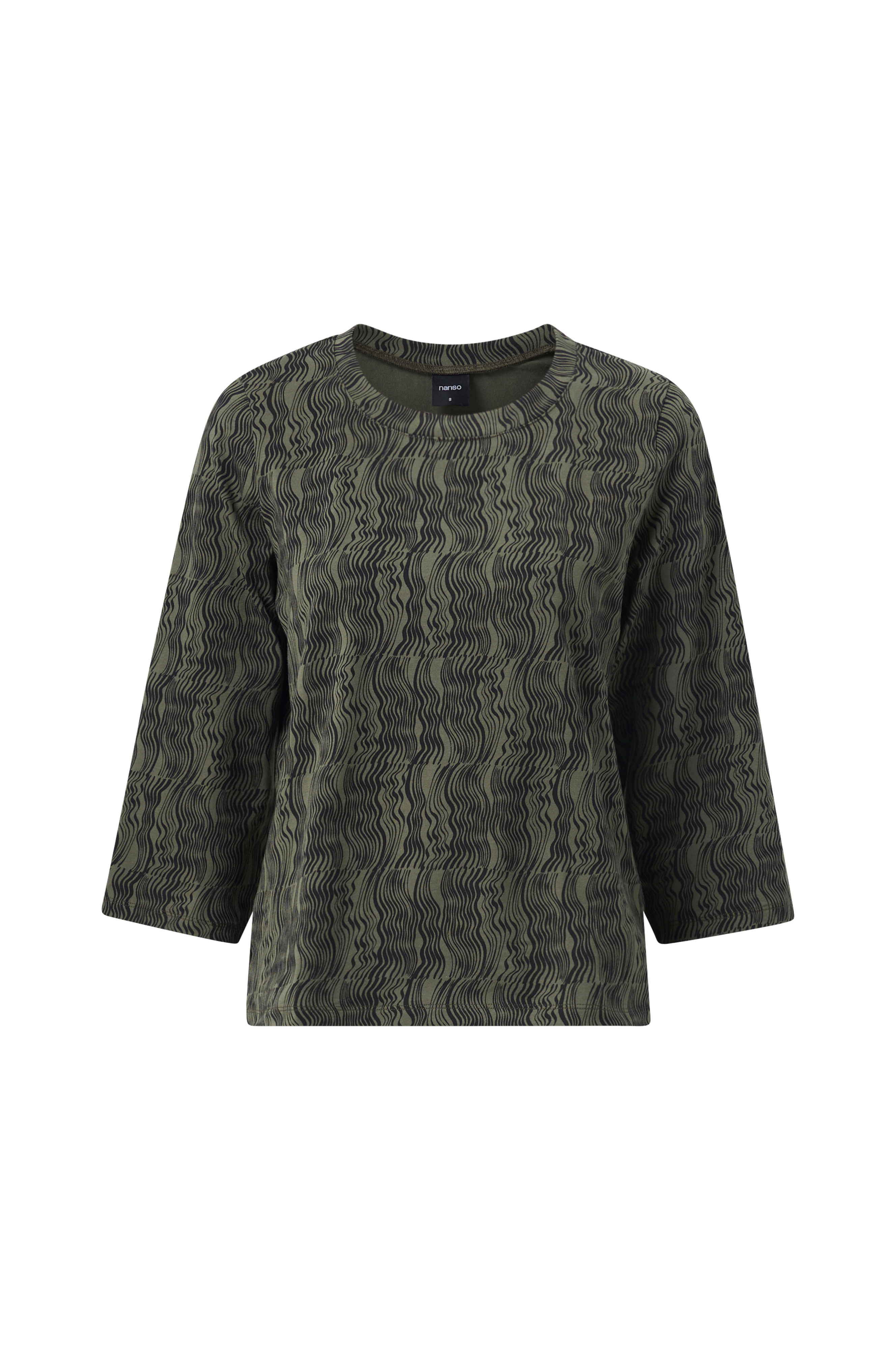 • Topp i bomullstrikå• 3/4-långa ärmar• Sprund nedtill i sidorna