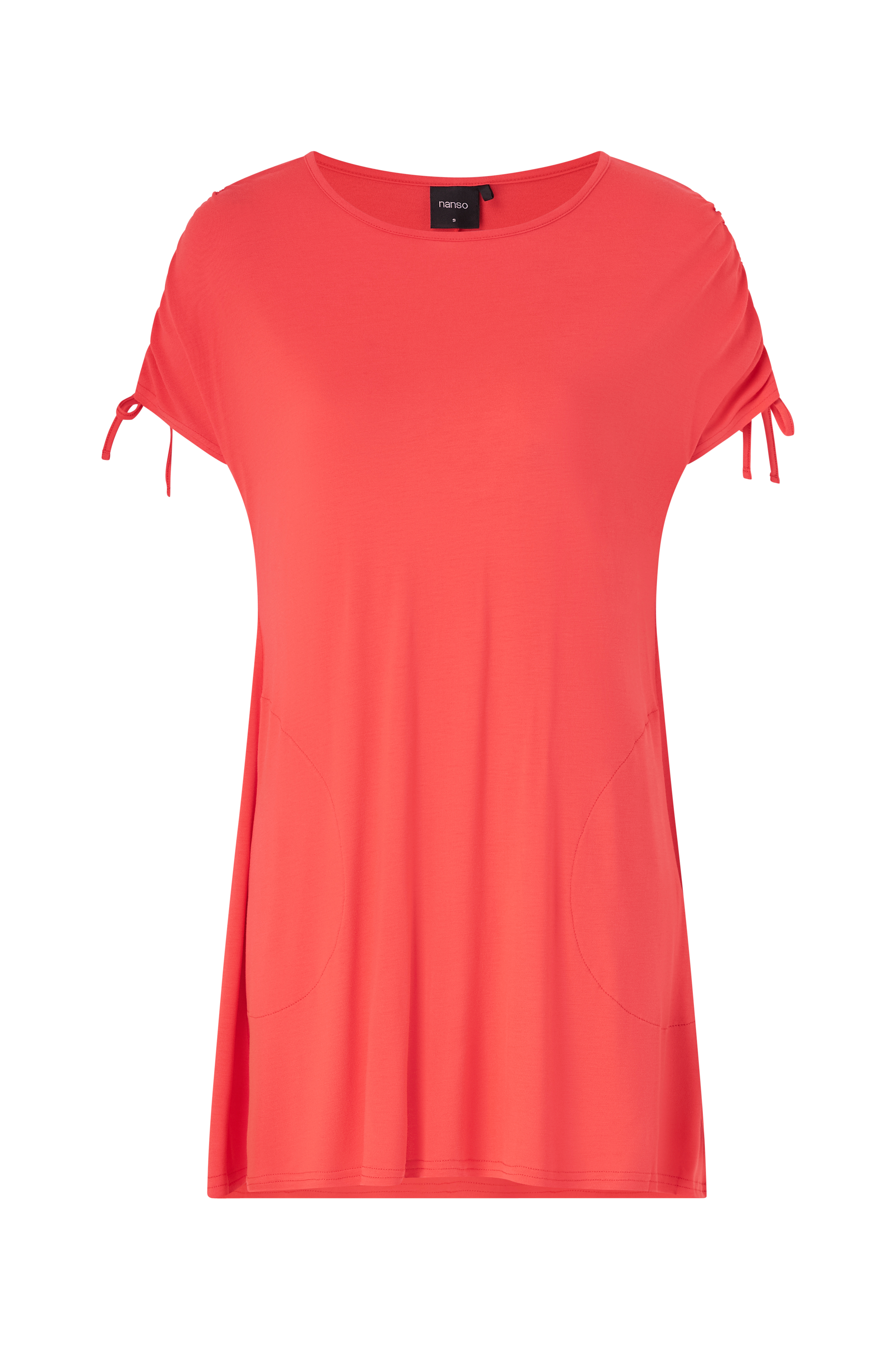 • Mjuk, stretchig tunika i trikå• Kort ärm• Rynk med dragsko på ärmarna• Längd: 84 cm i storlek S