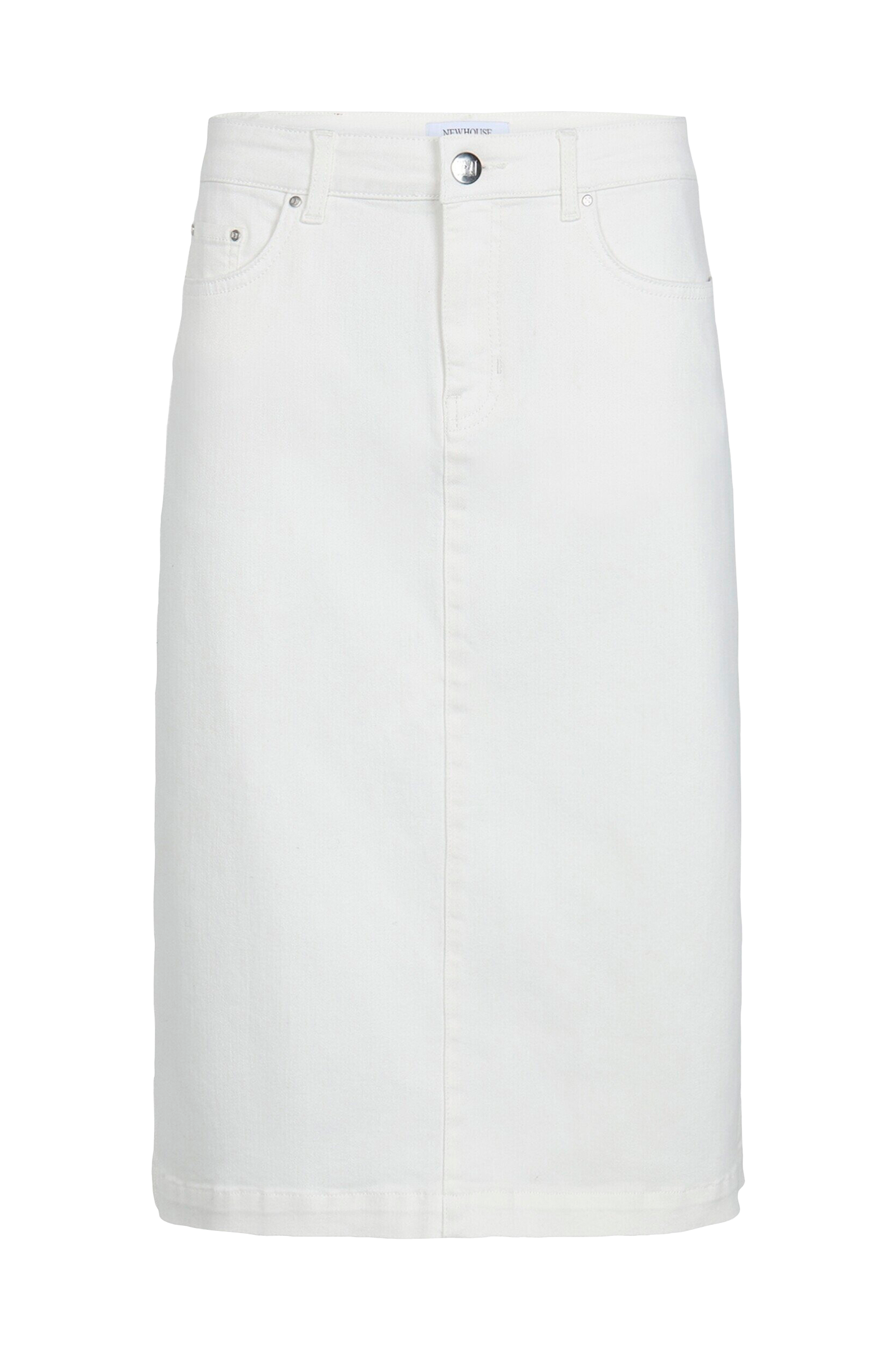 Denimkjol med klassisk femficksdesign och tidlös silhuett. Detaljerad med en logotypknapp och silverfärgade metallnitar för en ren och raffinerad look. Avslutad med en logopatch som en subtil signaturdetalj.