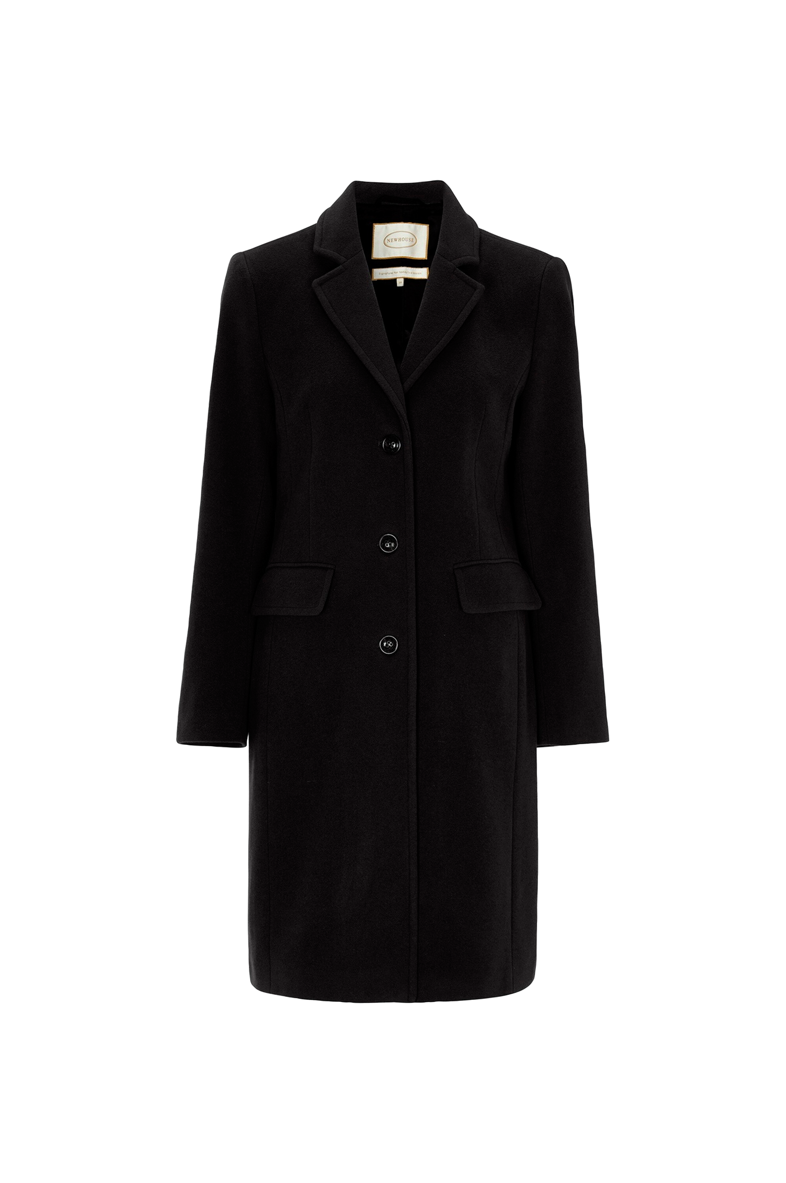 Klassisk kappa i ull och kashmir med krage och slag. Smickrande skärning med snygga, rena linjer. Rocken har två fickor med lock och stängs med tre corozoknappar. Insidan är väl genomtänkt med ett noga utvalt foder, kontrastpasspoaler och sticksömmar. En välgjord klassisk kappa som kommer att hålla i många år.