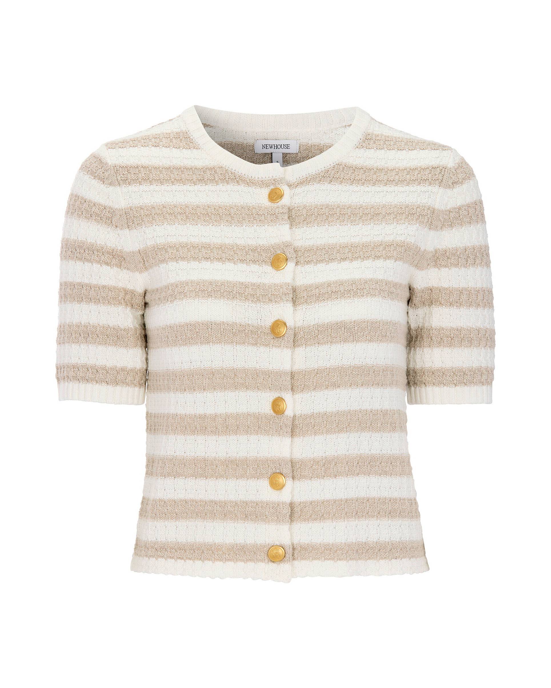 Stickad cardigan med korta ärmar och en dekorativ struktur i 5 gauge.randig design med logoknappar i guldmetall.