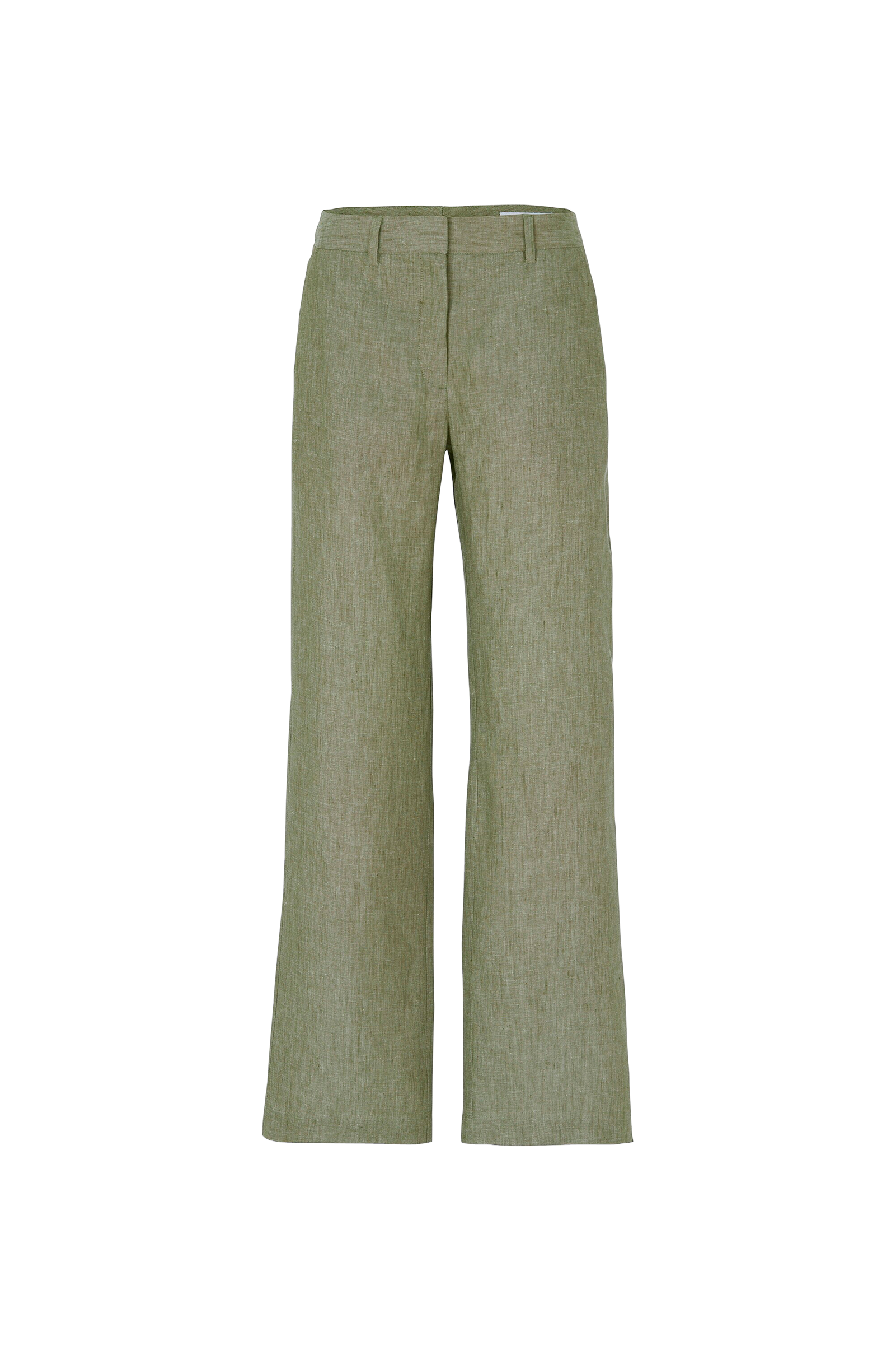 Linnebyxa i avslappnad passform med diagonala fickor och bälteshällor.