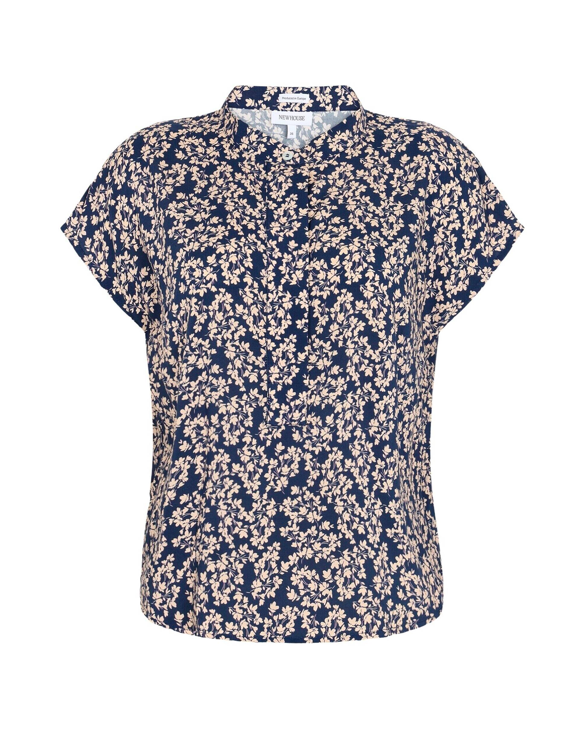 Topp med mandarinkrage och knäppning med dolda knappar för en ren och raffinerad look. Designad med cap-ärmar och tillverkad av fransk viskos med ett mjukt, flytande fall.