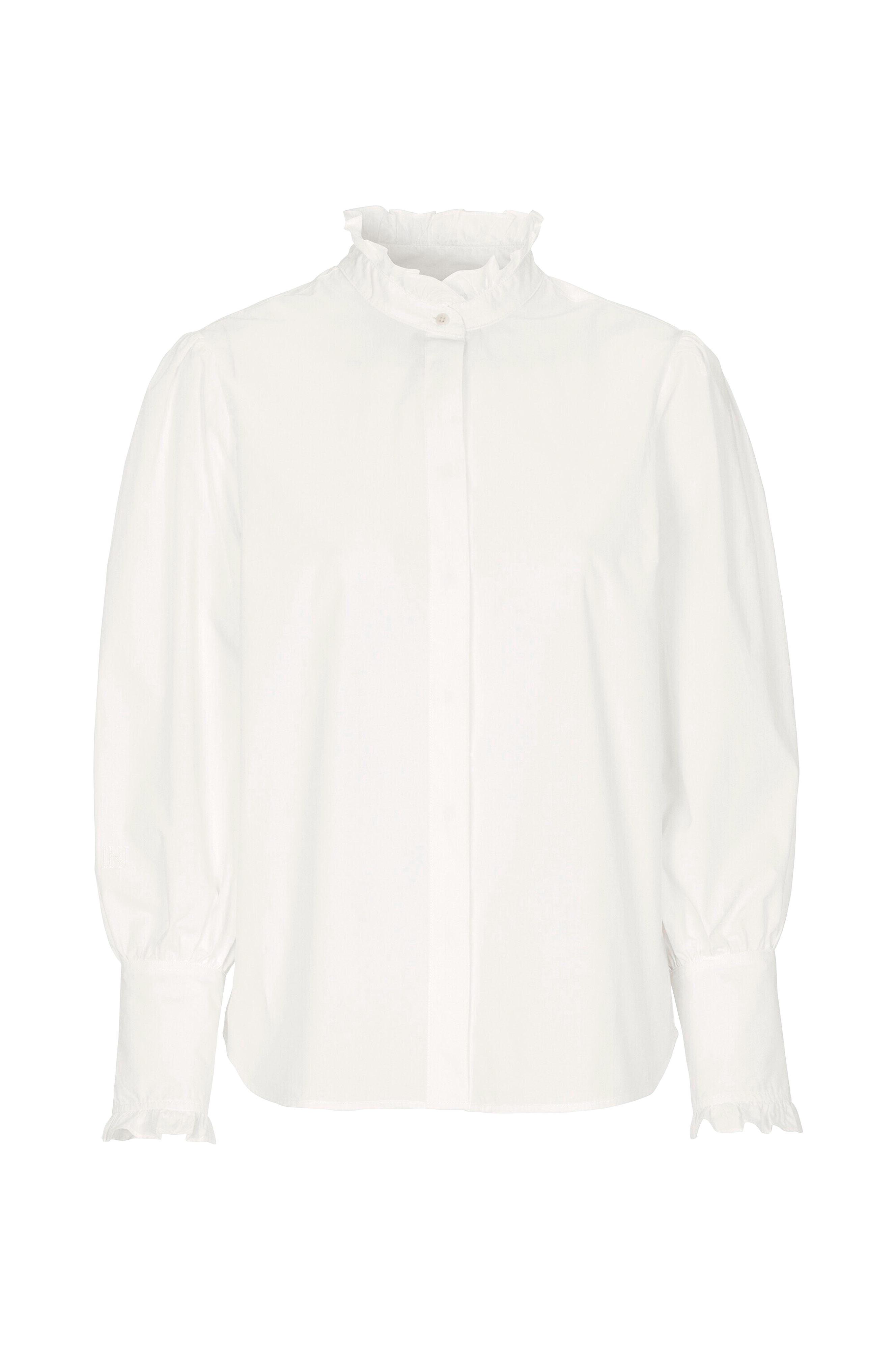 Feminin och smalskuren skjorta med puffärmar och volangdetaljer.