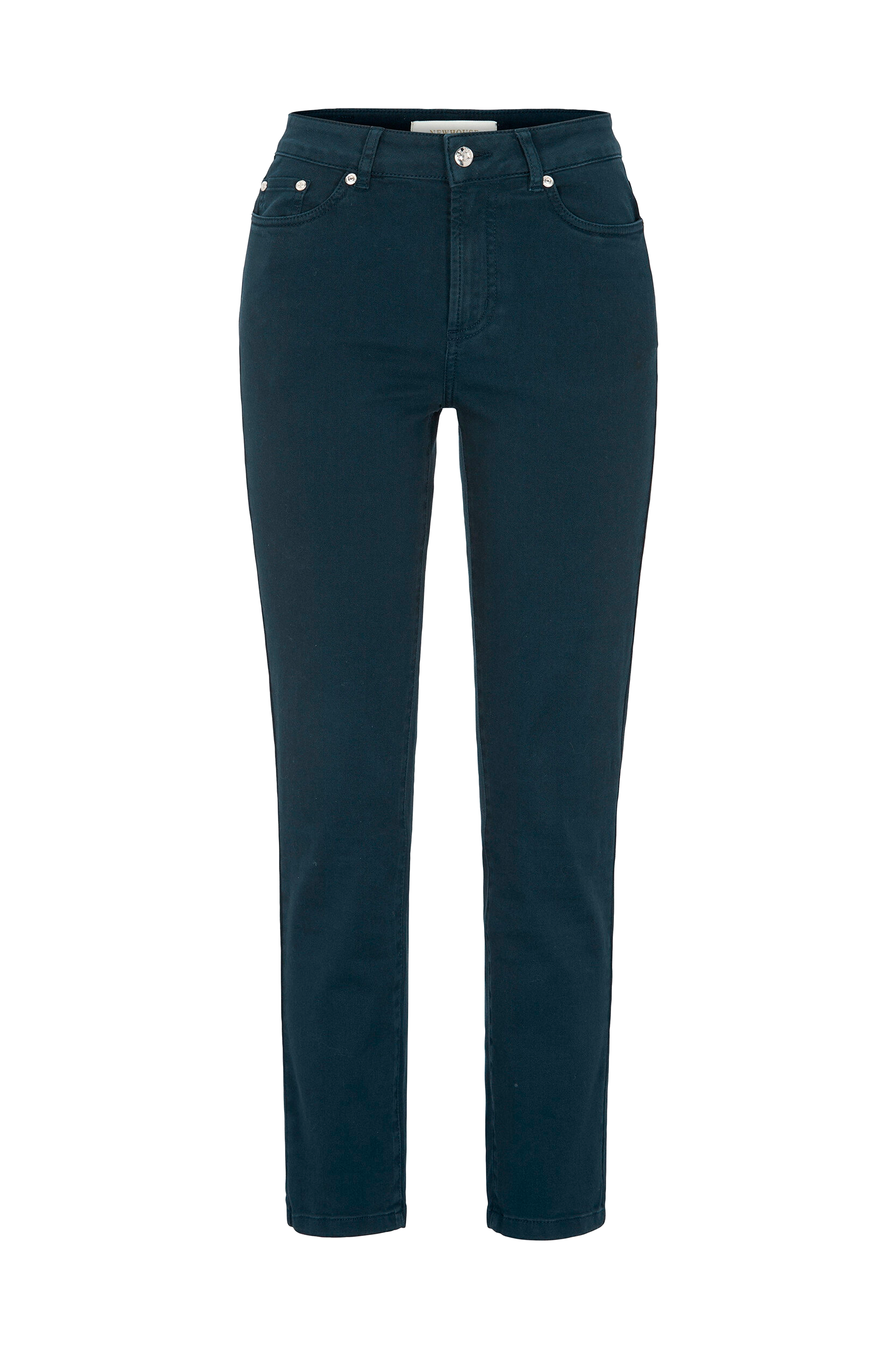 Klassisk femficksbyxa i twill med normalhög midja och smalt, croppat ben.