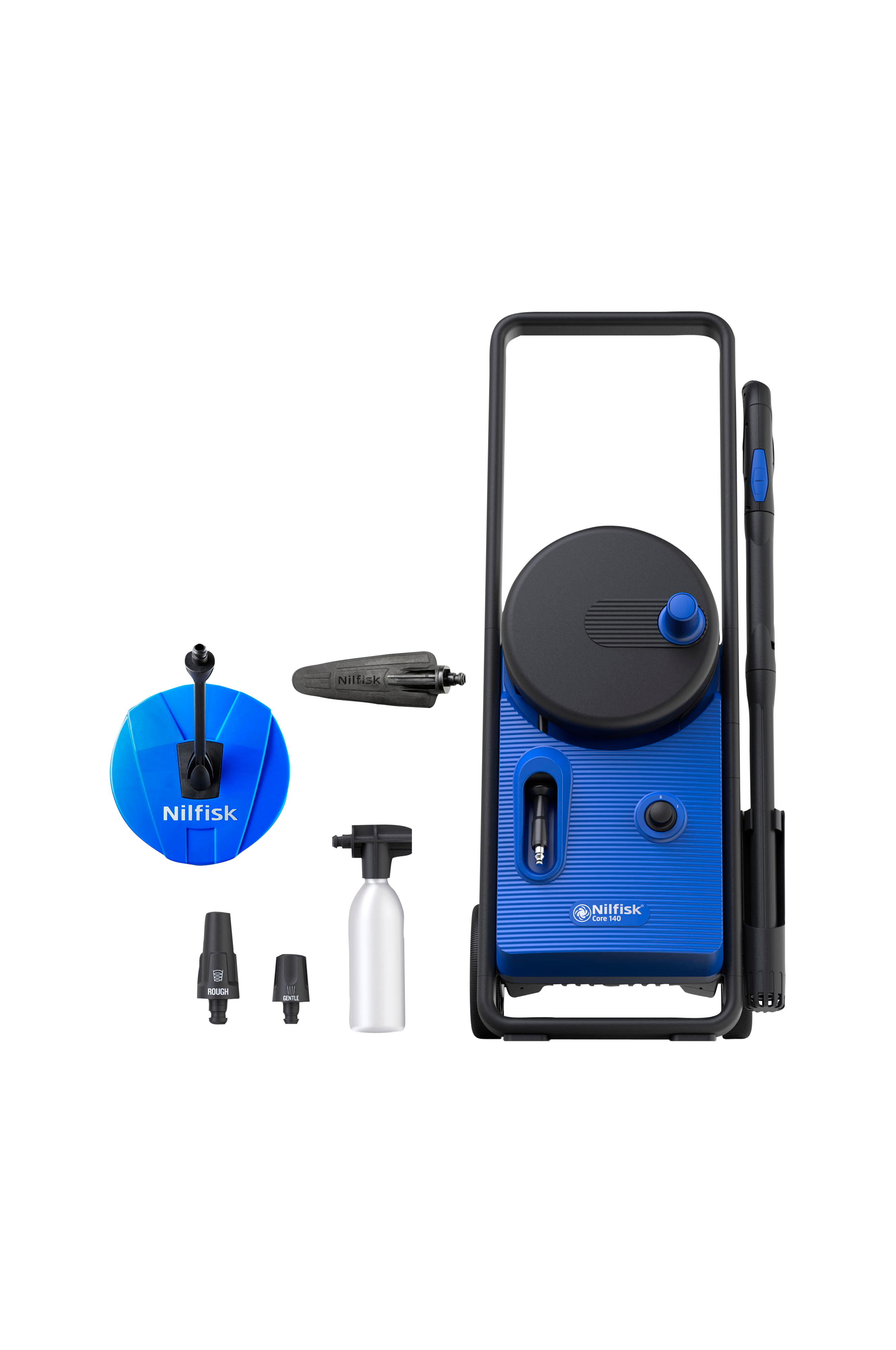 Denna kraftfulla högtryckstvätt från Nilfisk har handkontroll med effektreglering för justerbart vattentryck medan du rengör och klarar enkelt dina rengöringsbehov