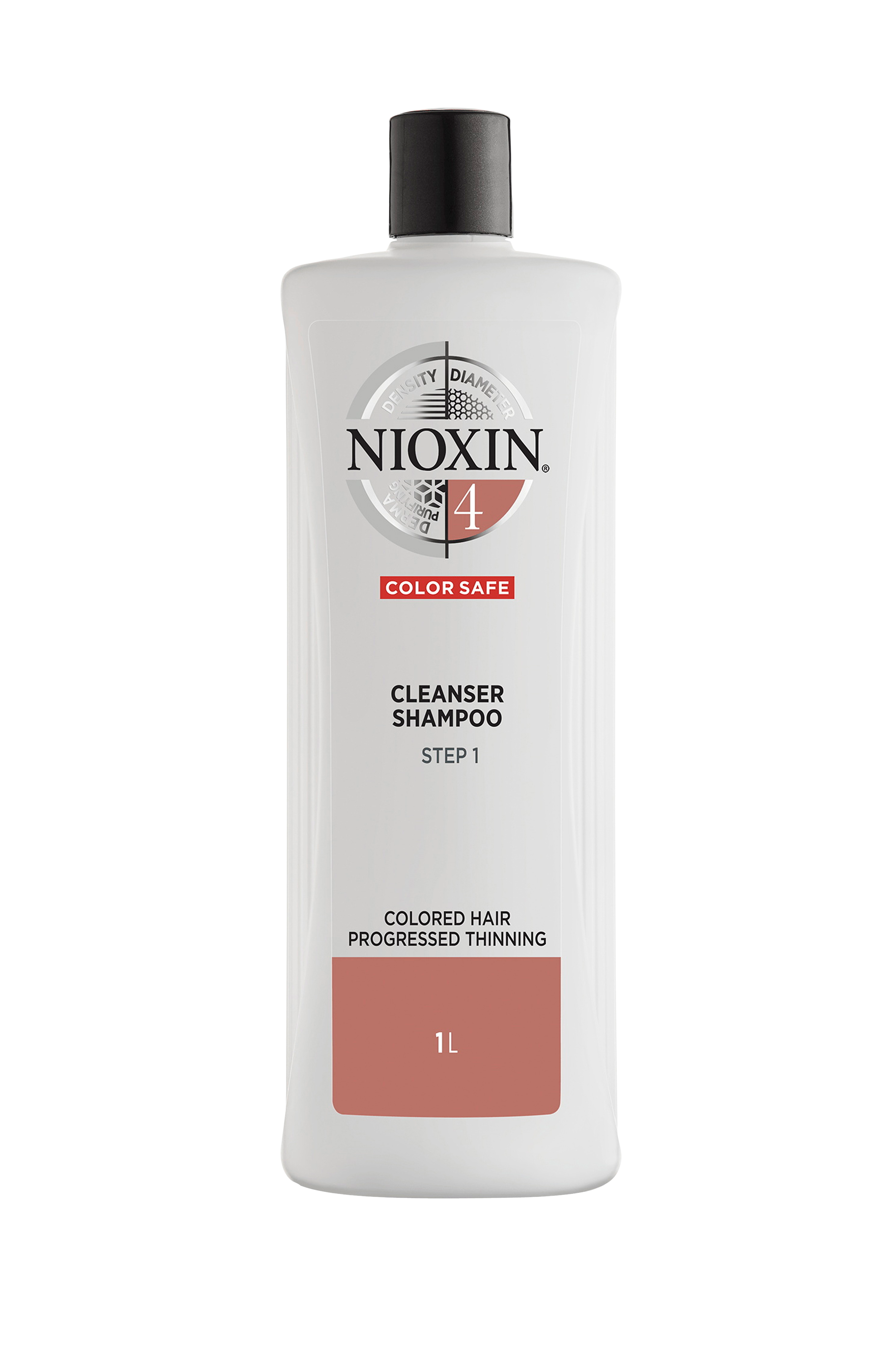 Nioxin System 4 Cleanser Shampoo för färgat hår med progressiv uttunning är det första steget i en tredelad Nioxin-rutin, speciellt framtagen för att stärka håret och hårstrukturen. Detta professionella schampo rengör huden och avlägsnar smuts, överflödig olja och andra miljörester från hårbotten och hår. Detta kliniskt och dermatologiskt testade schampo innehåller niacinamid och biotin som återfuktar hårbotten och hår från rot till topp samtidigt som det förtjockar och stärker hårstrukturen. Avsluta med Nioxin System 4 Conditioner och Nioxin System 4 Treatment för bästa resultat.