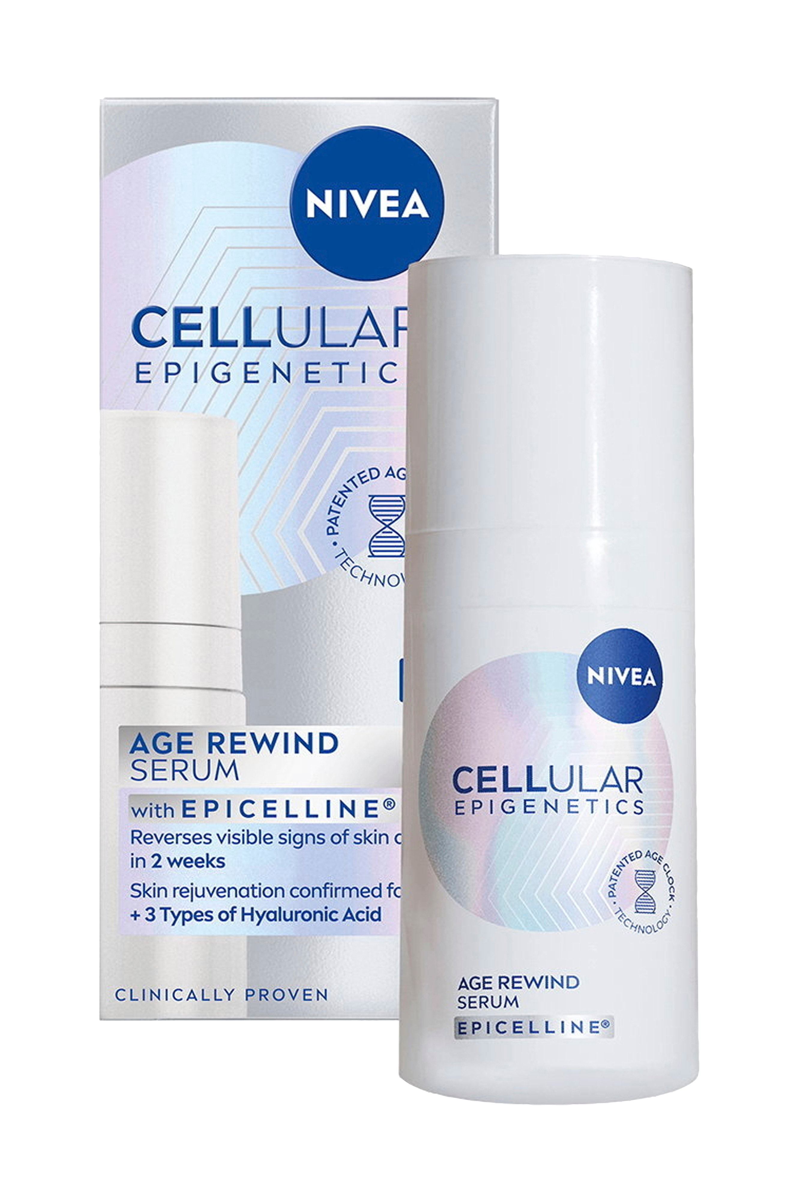 Cellular Epigenetics Age Rewind serum är ett effektivt serum för en mer strålande, fyllig och ungdomlig hud. Nivea upptäckte den kraftfulla ingrediensen Epicelline®, en revolutionerande ingrediens inom epigenetisk vetenskap, som påverkar cellåldern genom att reaktivera hudcellernas funktioner. Serumet innehåller tre typer av hyaluronsyra som ger intensiv återfuktning och en plumpande effekt för ett slätare utseende. Serumet motverkar 10 tecken på åldrande*, inklusive rynkor, förlust av elasticitet och ojämn hudton, och är lämpligt för alla hudtyper, även känslig hud. Denna produkt är utformad för att förbättra din hudvård och ge resultat. (*klinisk studie, resultatförbättringar, 30-43 kvinnor, 2024)