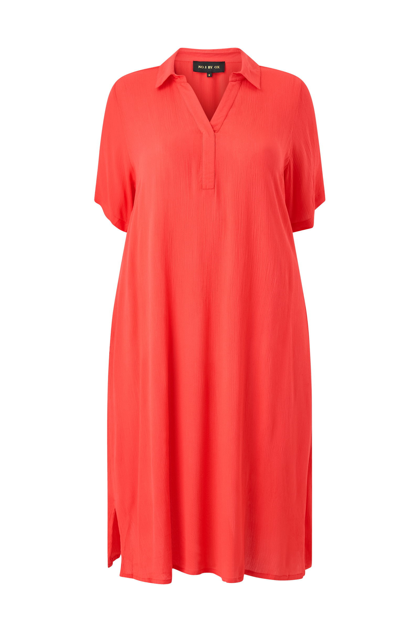 • Klänning i krinklad viskos• V-ringning med krage• Korta ärmar• Fickor i sidorna• Korta slitsar nedtill i sidorna• Längd: 122 cm i storlek S• Plusstorlekar