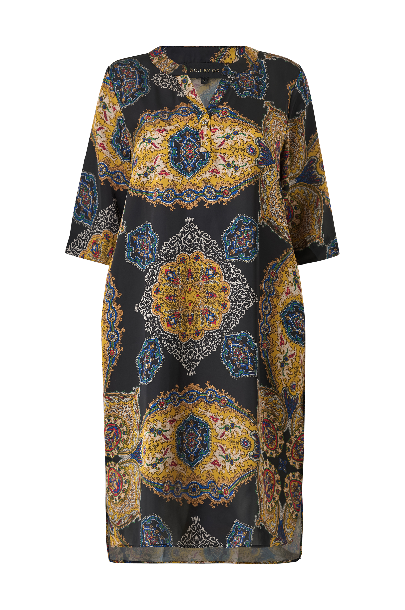 • Mönstrad midiklänning• Kvalitet med lyster• V-ringning• 3/4-långa ärmar• Fickor i sidorna• Slitsar i sidorna• Längd: 117 cm i storlek S• Plusstorlekar