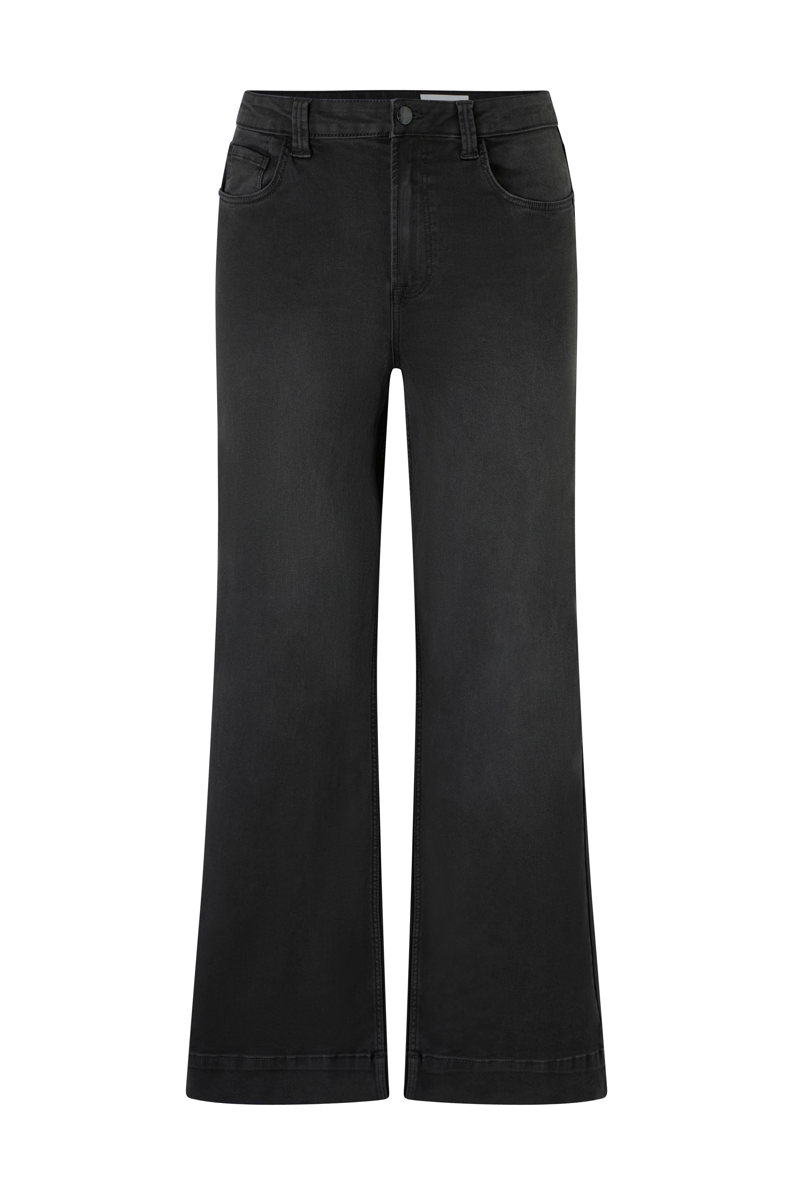 • Högmidjade jeans med utsvängda ben