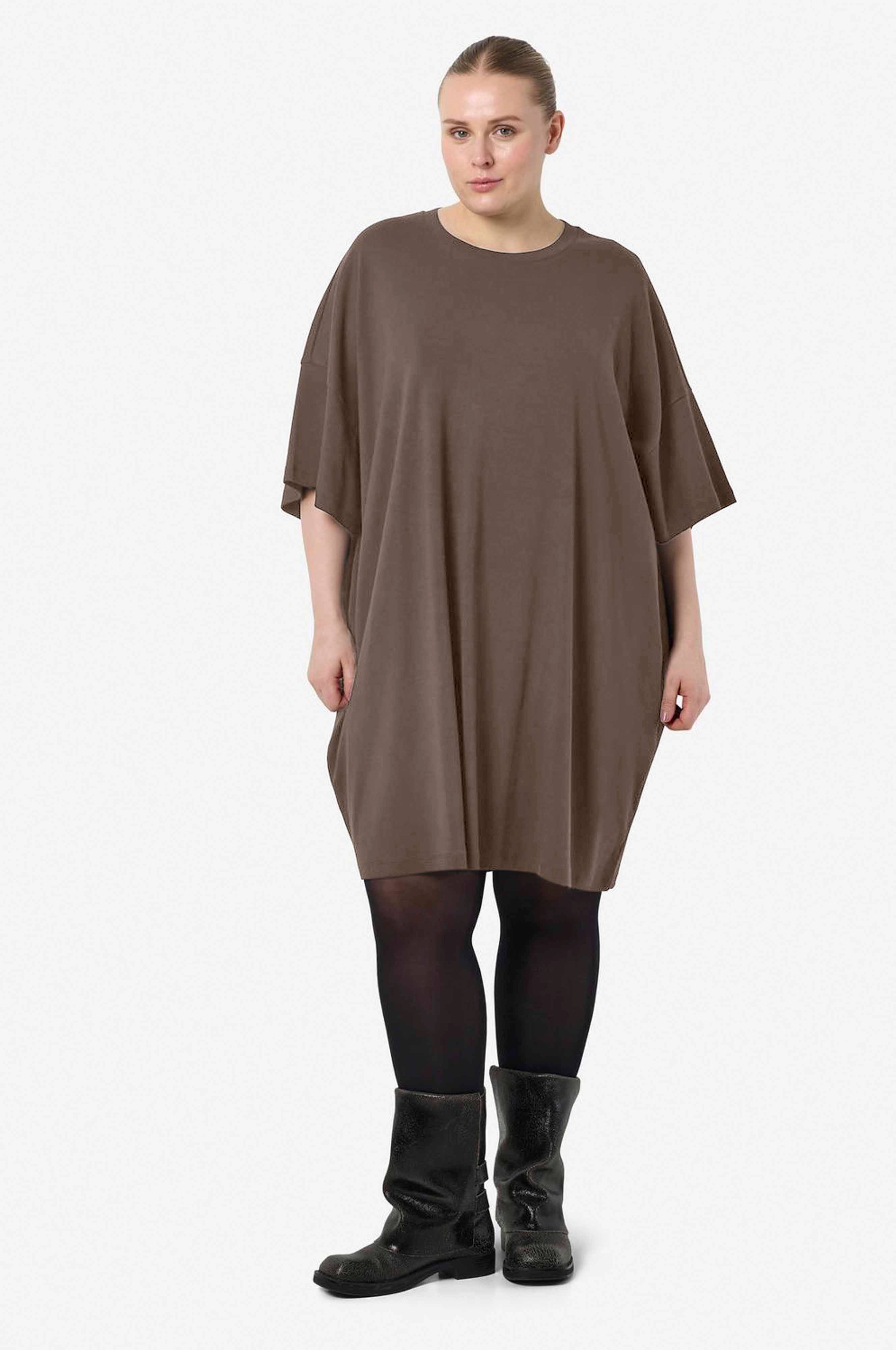 • T-shirtklänning i mjuk bomullsmix• Rundad halsringning med smal ribbkant• Korta ärmar med nerhasade axlar• Boxig, avslappnad passform• Plusstorlekar• Längd: 92 cm i storlek 44