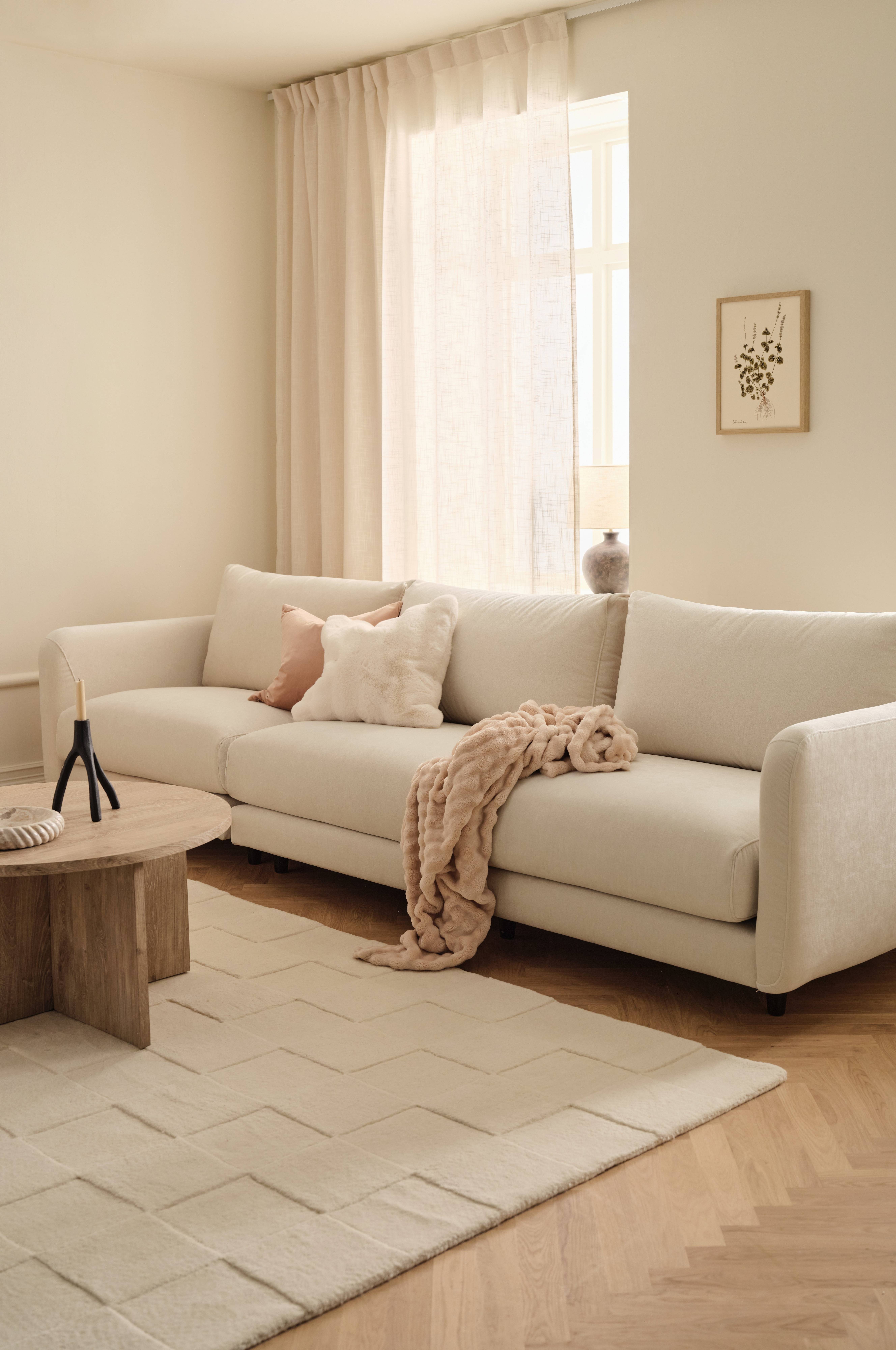 Den här soffan är en perfekt balans mellan form och funktion. I en elegant beige ton tillför denna möbel subtil elegans till alla rum. Byggd för att ge vardaglig komfort med bestående stil. Stommen är med nozagfjädrar, sitsen är med skum och ryggen är med silikon.