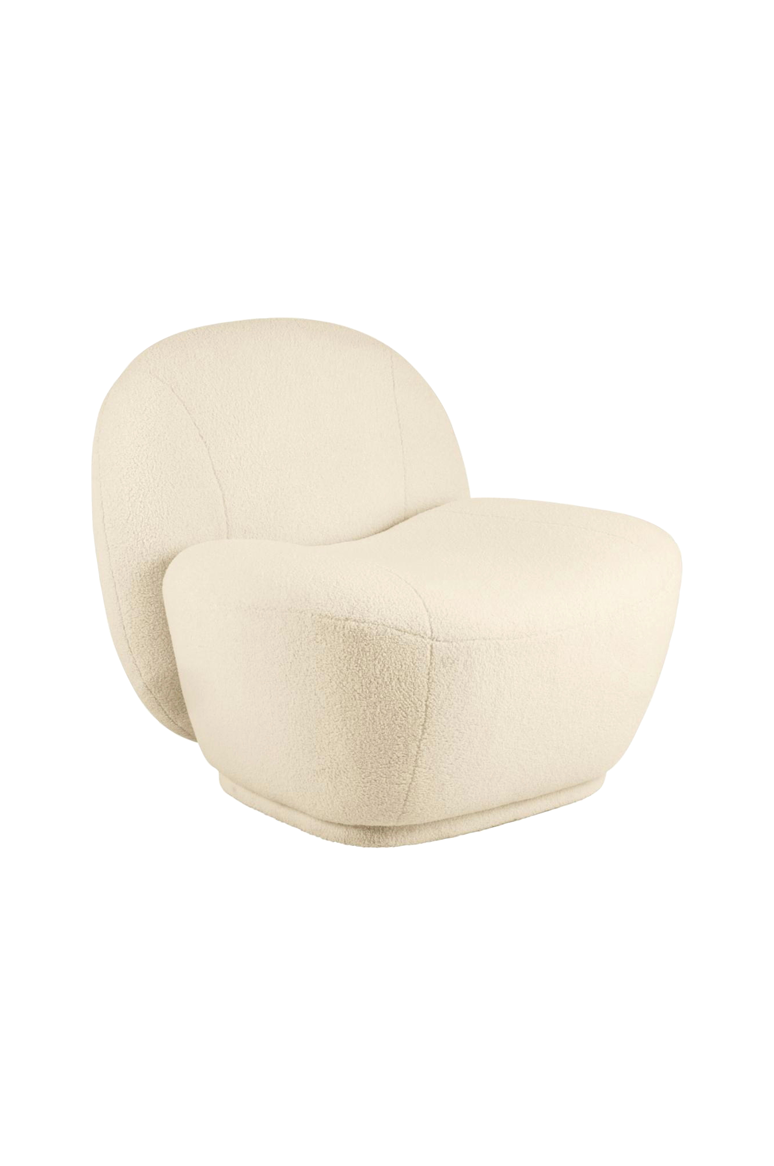 Älskar du organiskt formade möbler? I så fall blir det kärlek vid första ögonkastet när du ser denna fåtölj. Det är kombinationen av den vackra, organiska formen och det otroligt mjuka tyget i naturfärg som gör fåtöljen så elegant. Den låter dig slappna av bekvämt och ger samtidigt ett starkt intryck.