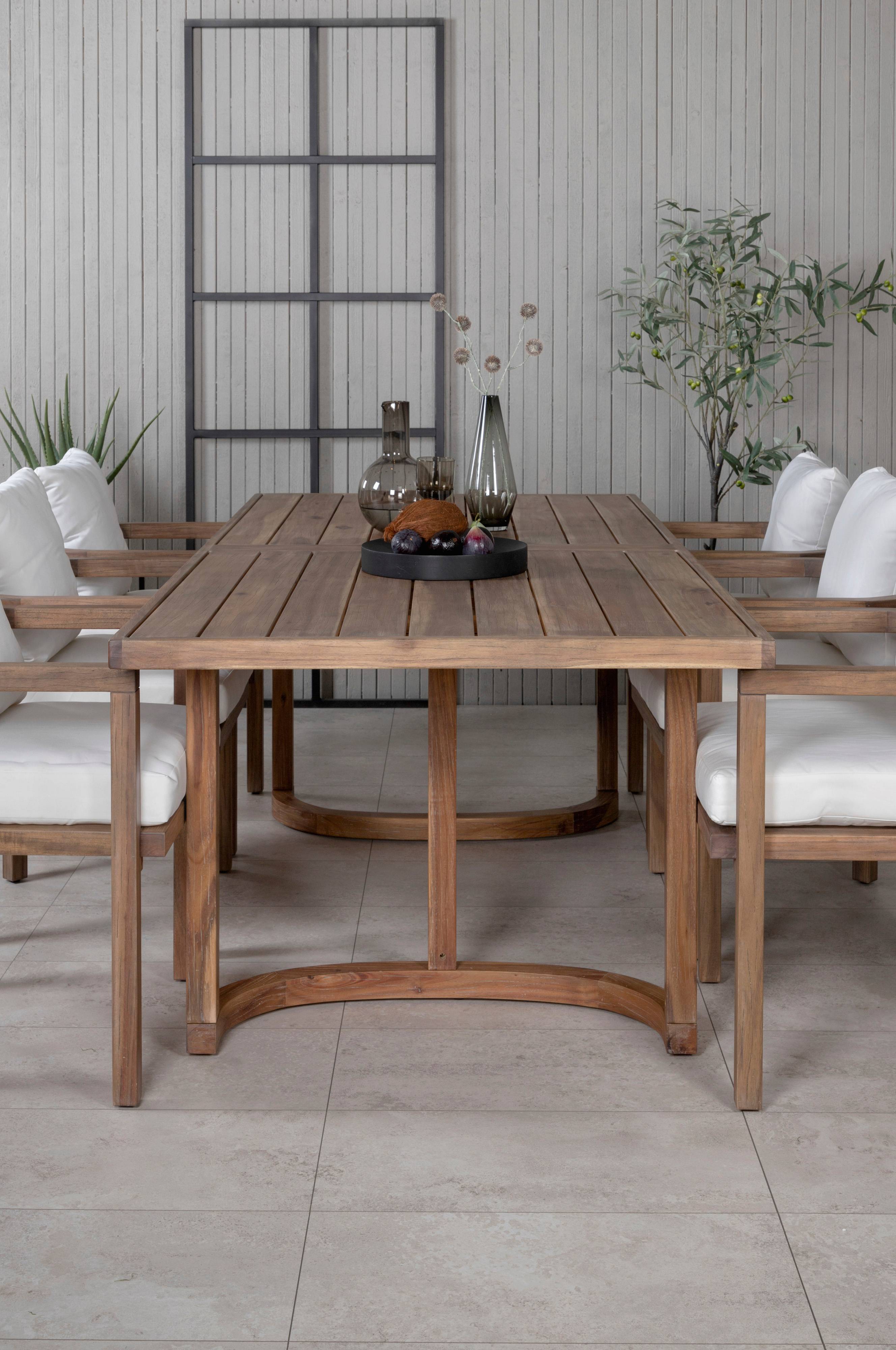 Elin matgrupp med en bordstopp i acacia och bordsben i acacia. Matchas med 6 st Elin matstolar med stolsits i acacia och stolsben i acacia. Bord och stol kräver enklare montering. Bordets mått: Längd: 214 cm, Bredd: 100 cm, Höjd: 76 cm. Stolens mått: Sittdjup: 55.5 cm, Sittbredd: 53 cm, Sitthöjd: 68.5 cm.