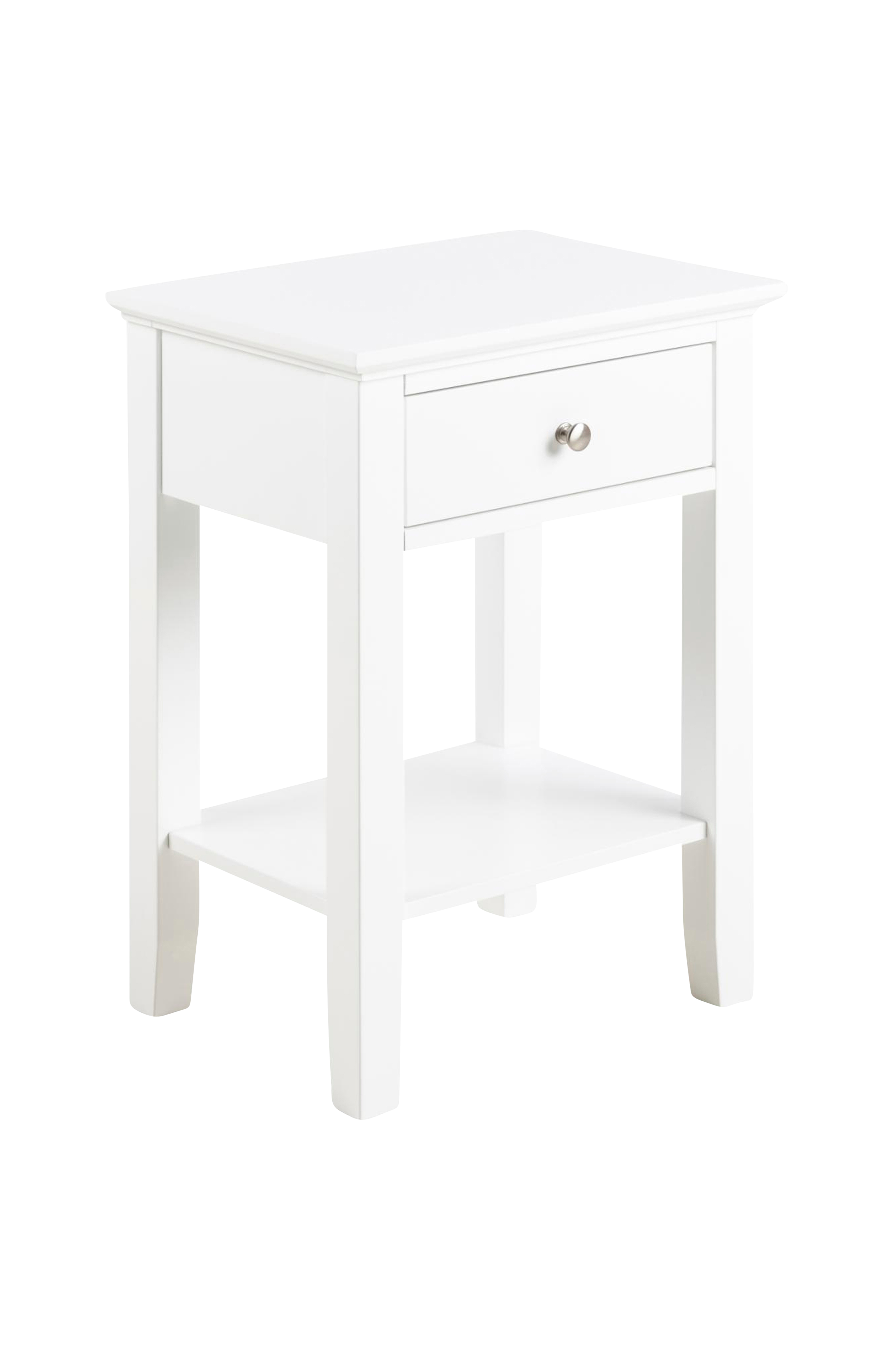 Älskar du ordning och reda i sovrummet? Då faller du kanske för detta sängbord. Det har en klassisk, ren stil som är tidlös. I lådan kan du gömma undan dina skatter och på hyllan finns plats för dina böcker. Enkelt och funktionellt, vad mer kan man begära?