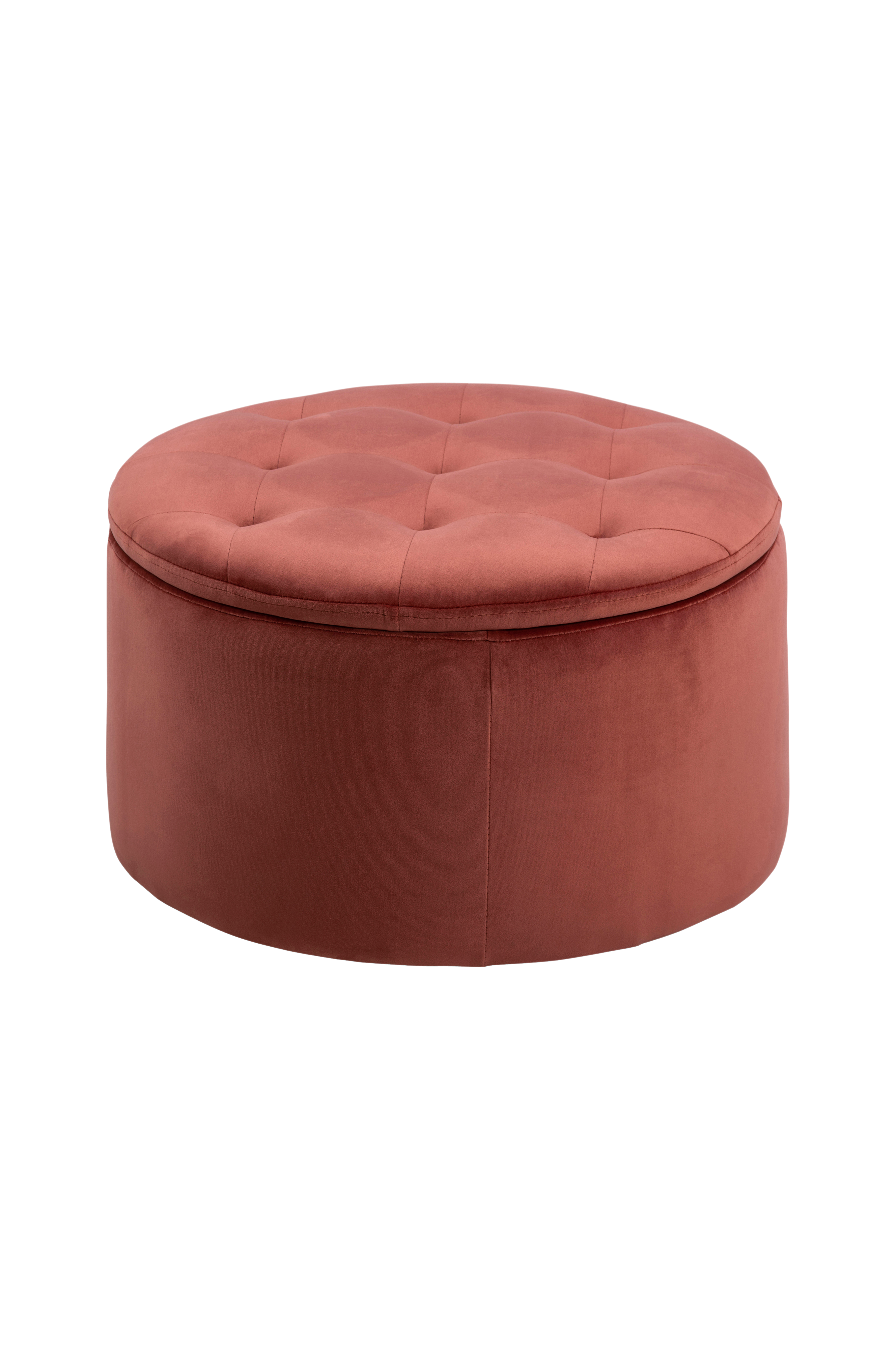 Sittpuff med förvaring. Med stoppad sits. Ram av MDF, plywood och massivt trä. Diameter 60, höjd 35 cm. Klädsel av 100 % polyester sammet. Marindale 25 000. Levereras monterad.
