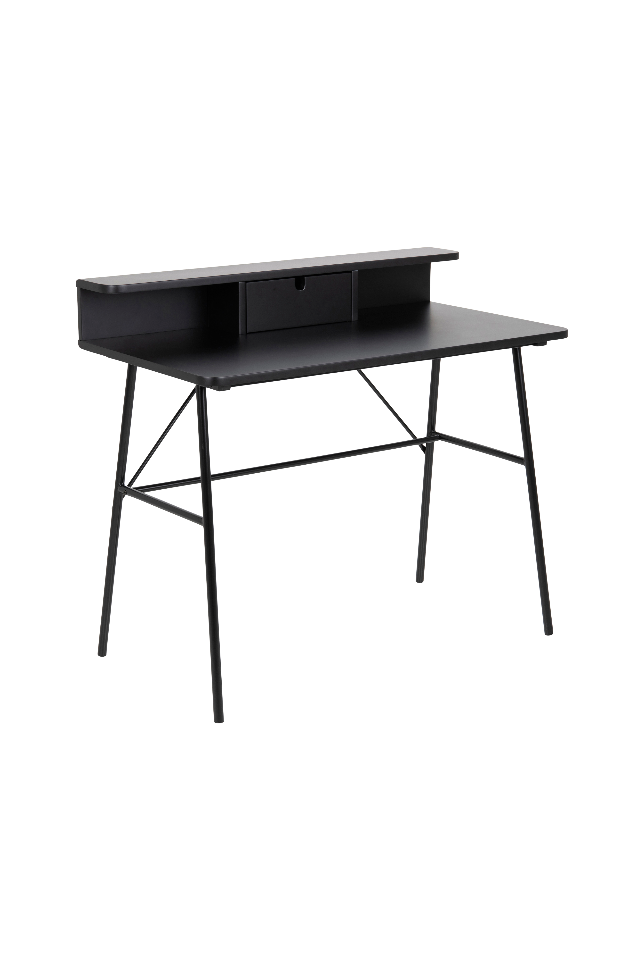 Skrivbord Svea av MDF. Med en låda och pulverlackat metallstativ. Mått; 55 x 100 cm, höjd 88,8 cm. Levereras omonterat.