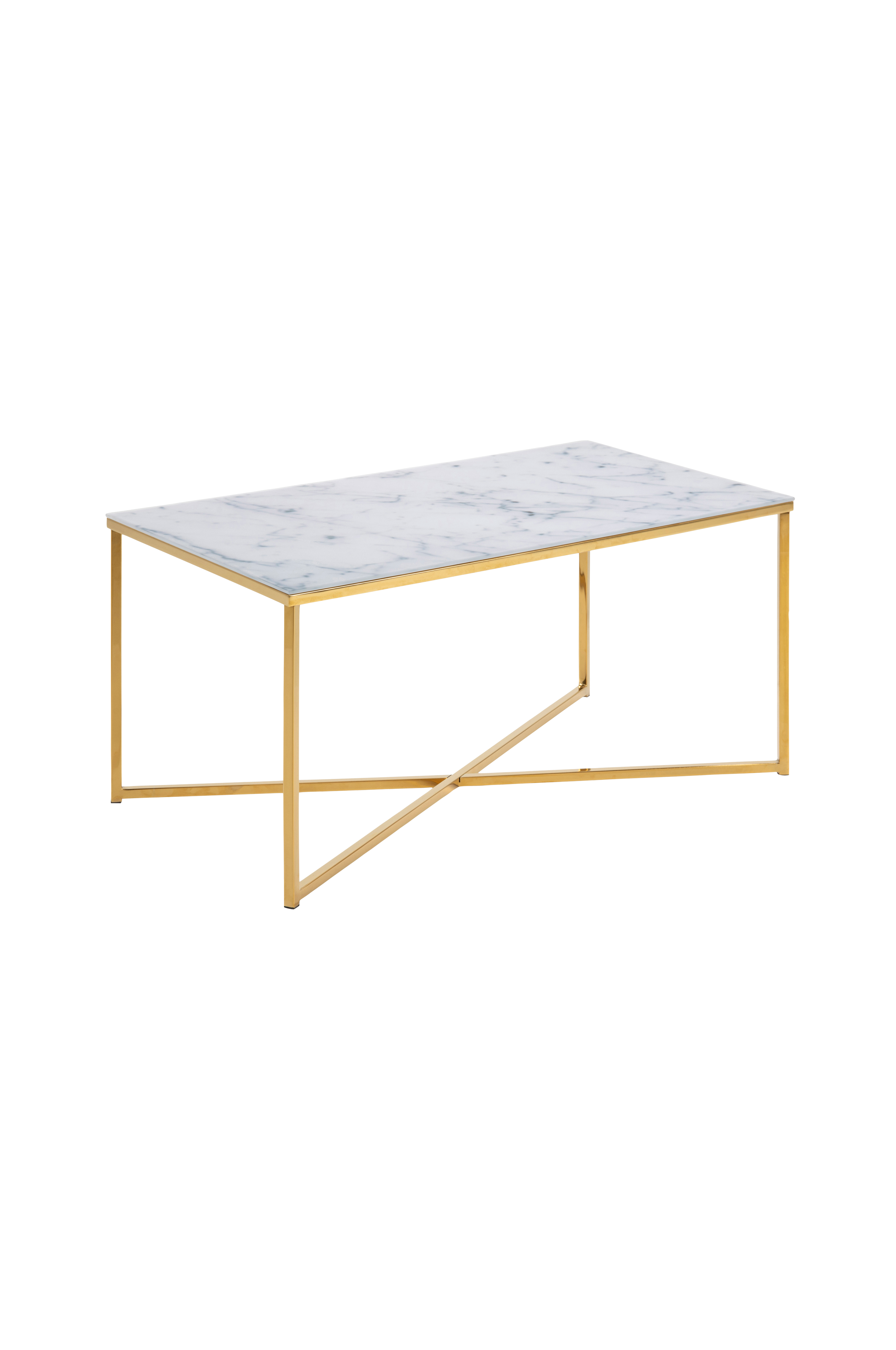 Soffbord Kasper. Metallstomme och marmorprintat glas. Mått: 50 x 90, höjd 45 cm. Levereras omonterat.