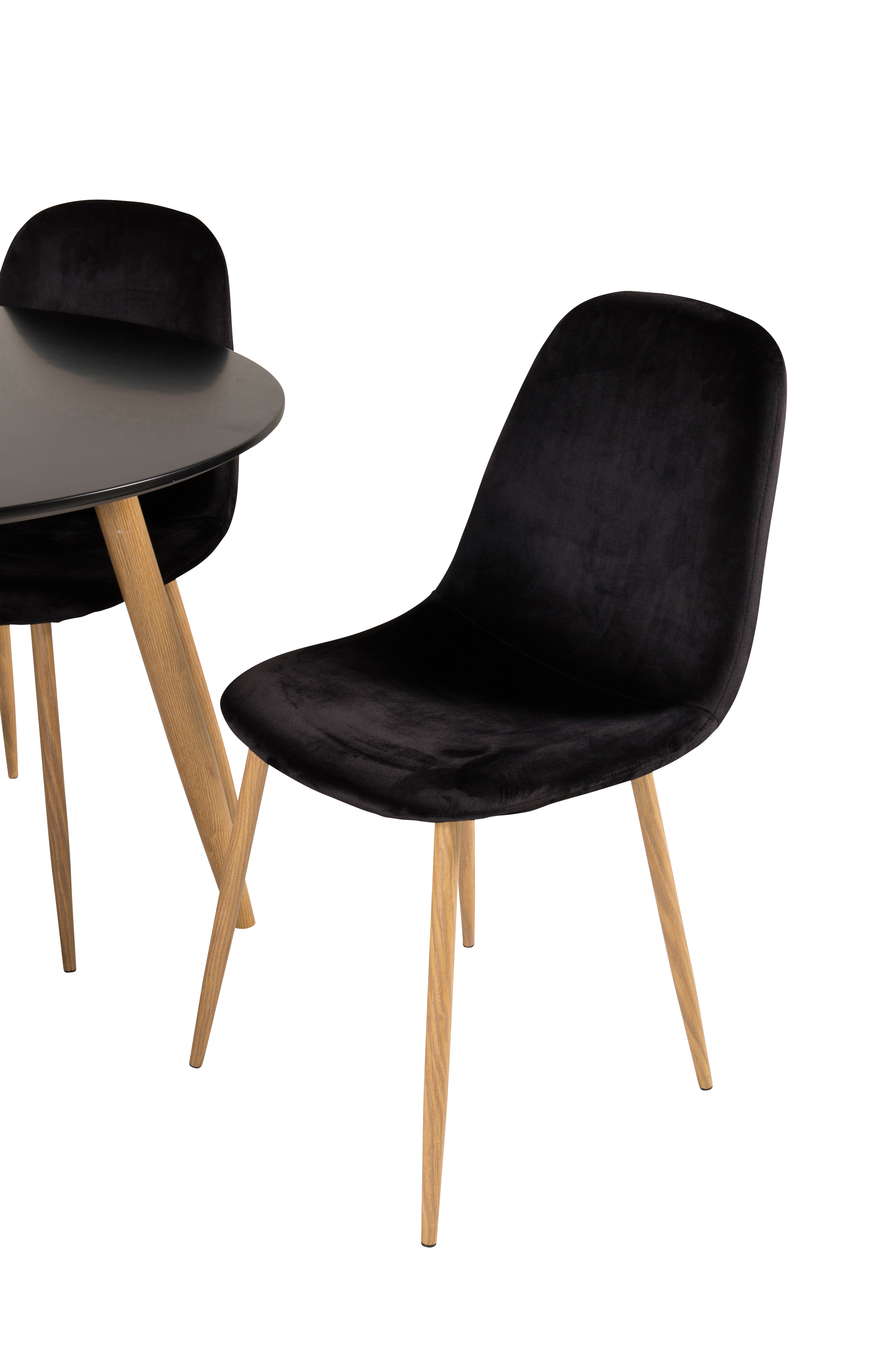 Stilren stol i sammet med metall ben. 2 pack. Bredd 43,5, höjd 87, djup 53 cm. Sitthöjd 48 cm. Kräver enklare montering.