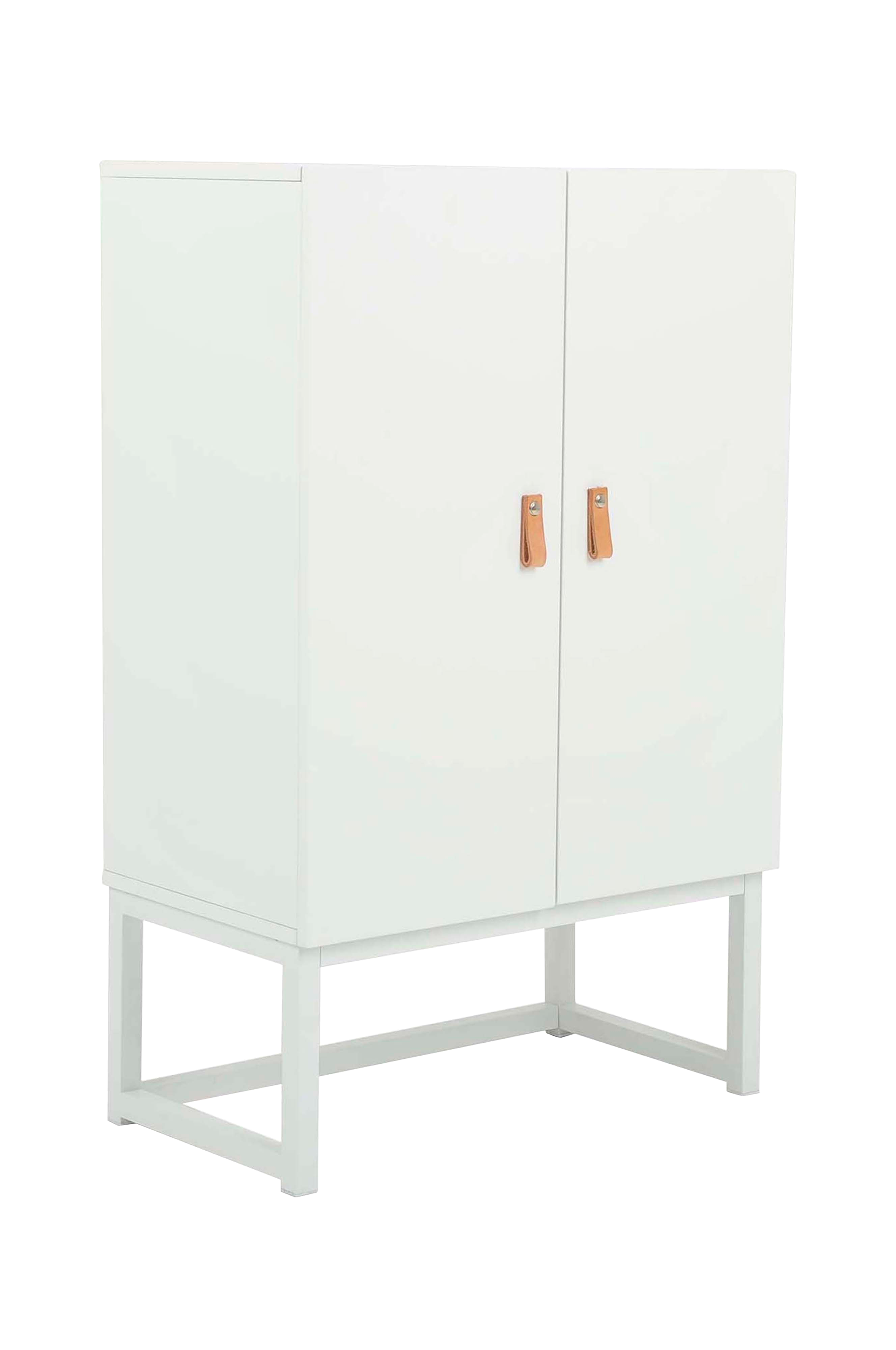 Underrede i pulverlackerad metall. Handtag i läder. (Stomme i lackerad mdf/spånplatta)