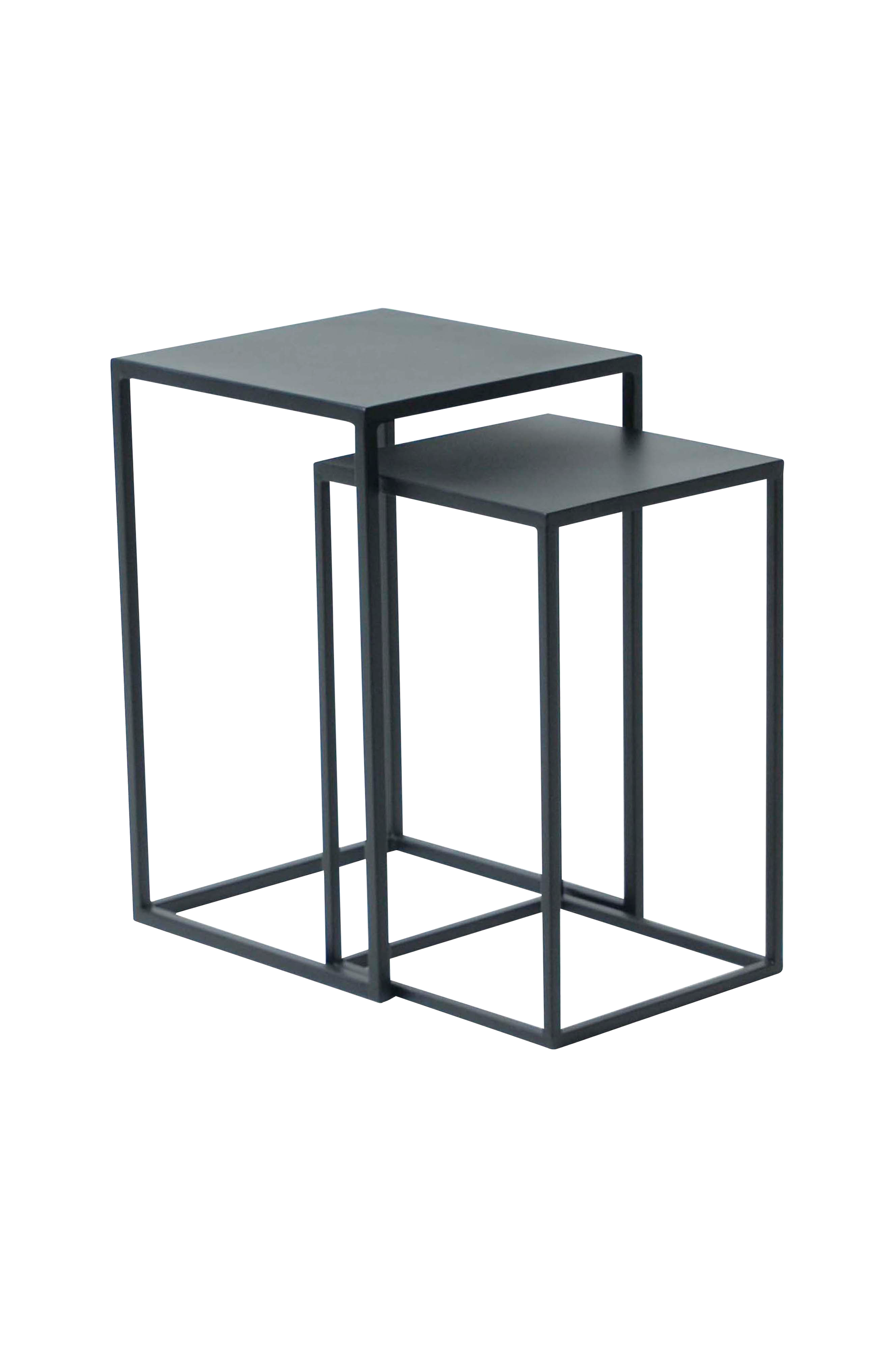 Satsbord i lackerad plåt i ett set som består av ett större och ett mindre bord. Säljs i 2 set, d.v.s. två större och två mindre bord. Monterat. Bord 1: Bredd: 35 . Djup: 35 . Höjd: 55 cm Bord 2: Bredd: 30 . Djup: 30 . Höjd: 48,5 cm