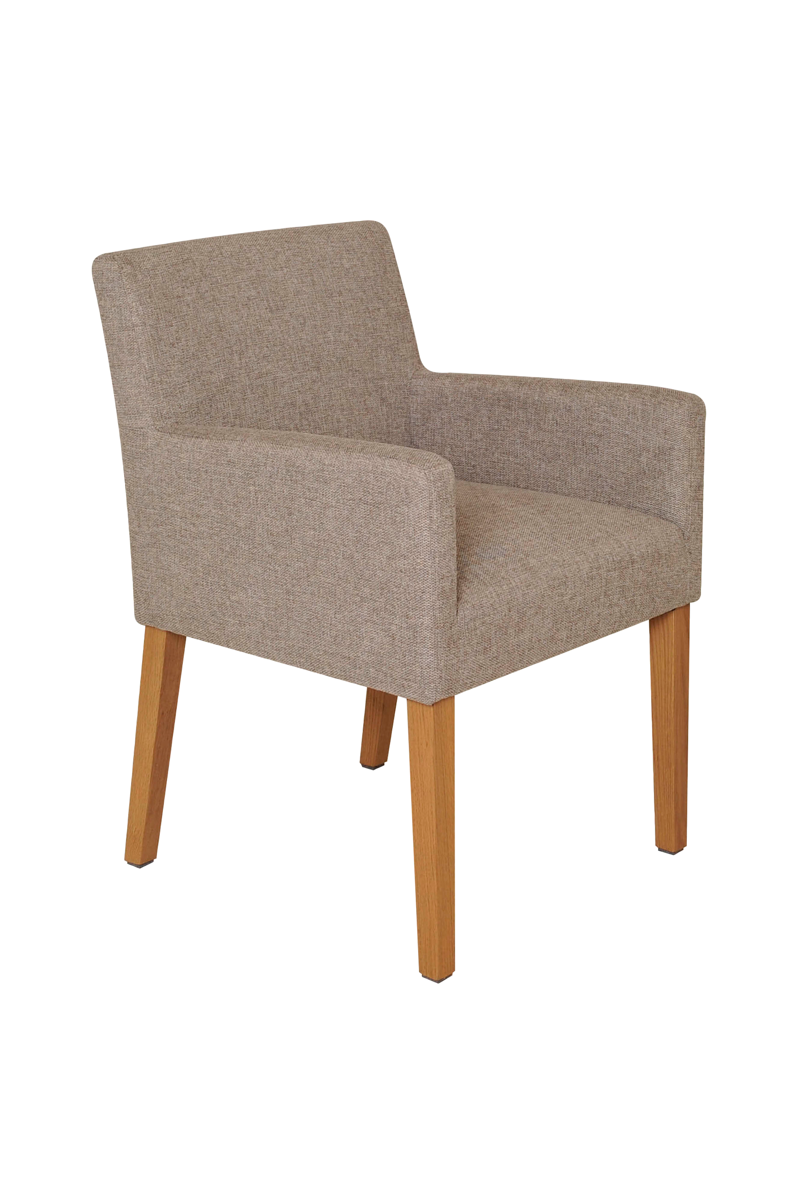 Matstol med armstöd i tyg och vitpigmenterade lackade ekben.