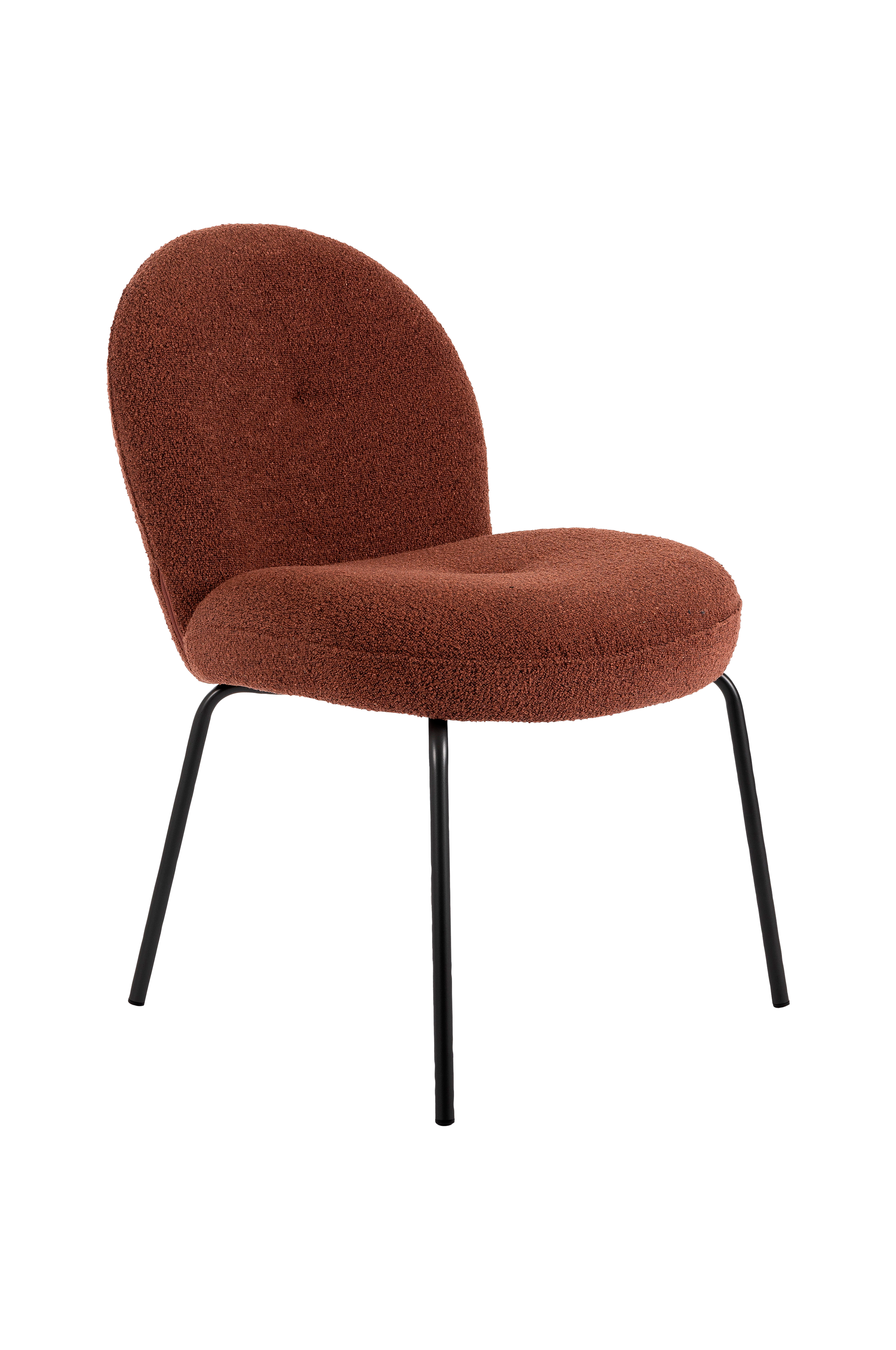 Dekorativ matstol som har bra stoppning i sits och rygg för extra sittkomfort. Runda och lekfulla former som gör den till ett blickfång.Benen är i lackerad metall.Förpackad 2 st i en låda.Artikeln kräver montering