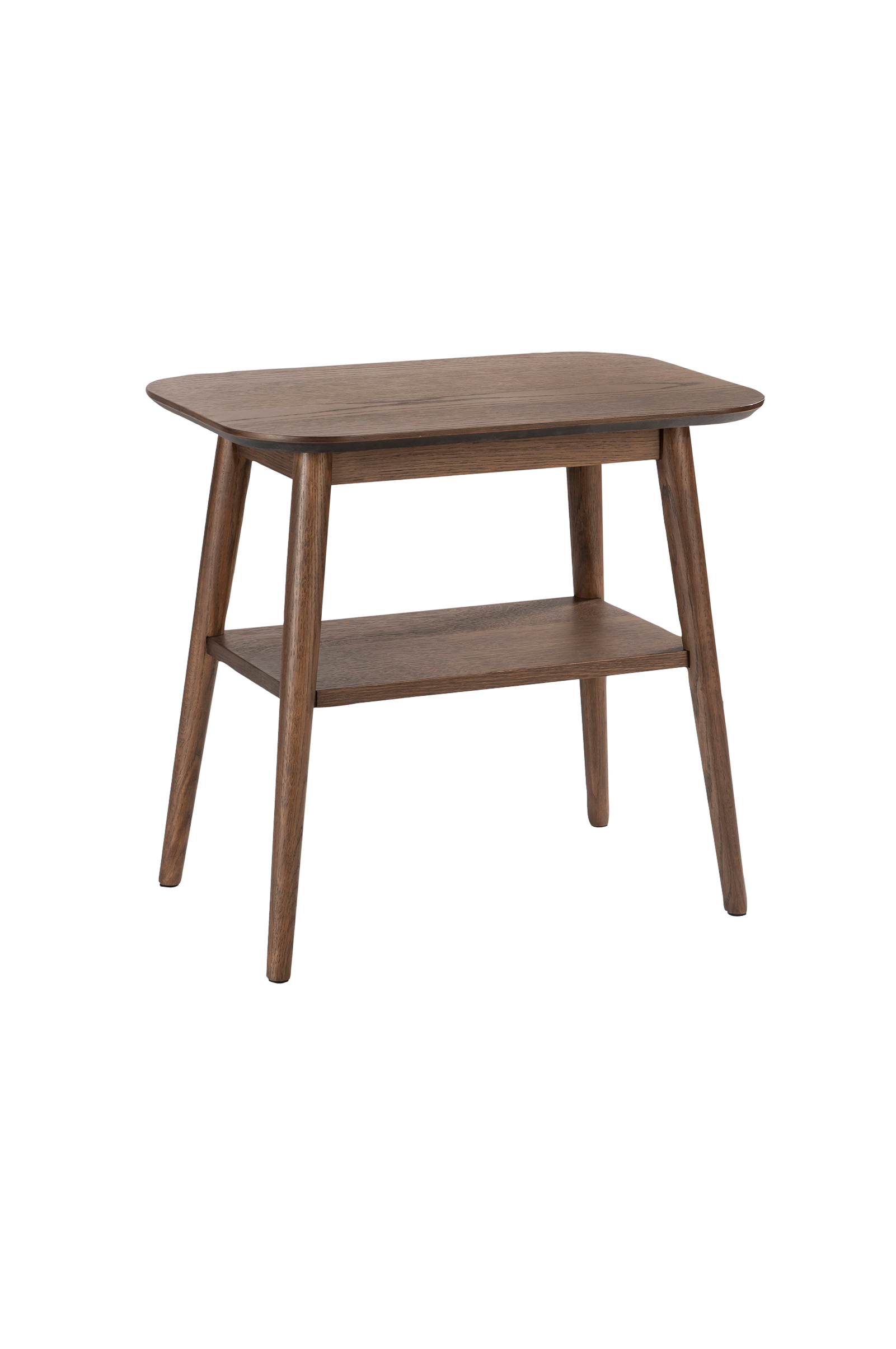 Ett sidobord i lackerad ekfanér med en nedre hylla. bordet står på fyra avsmalnande ben, vilket ger det en elegant och minimalistisk design.Artikeln kräver montering.