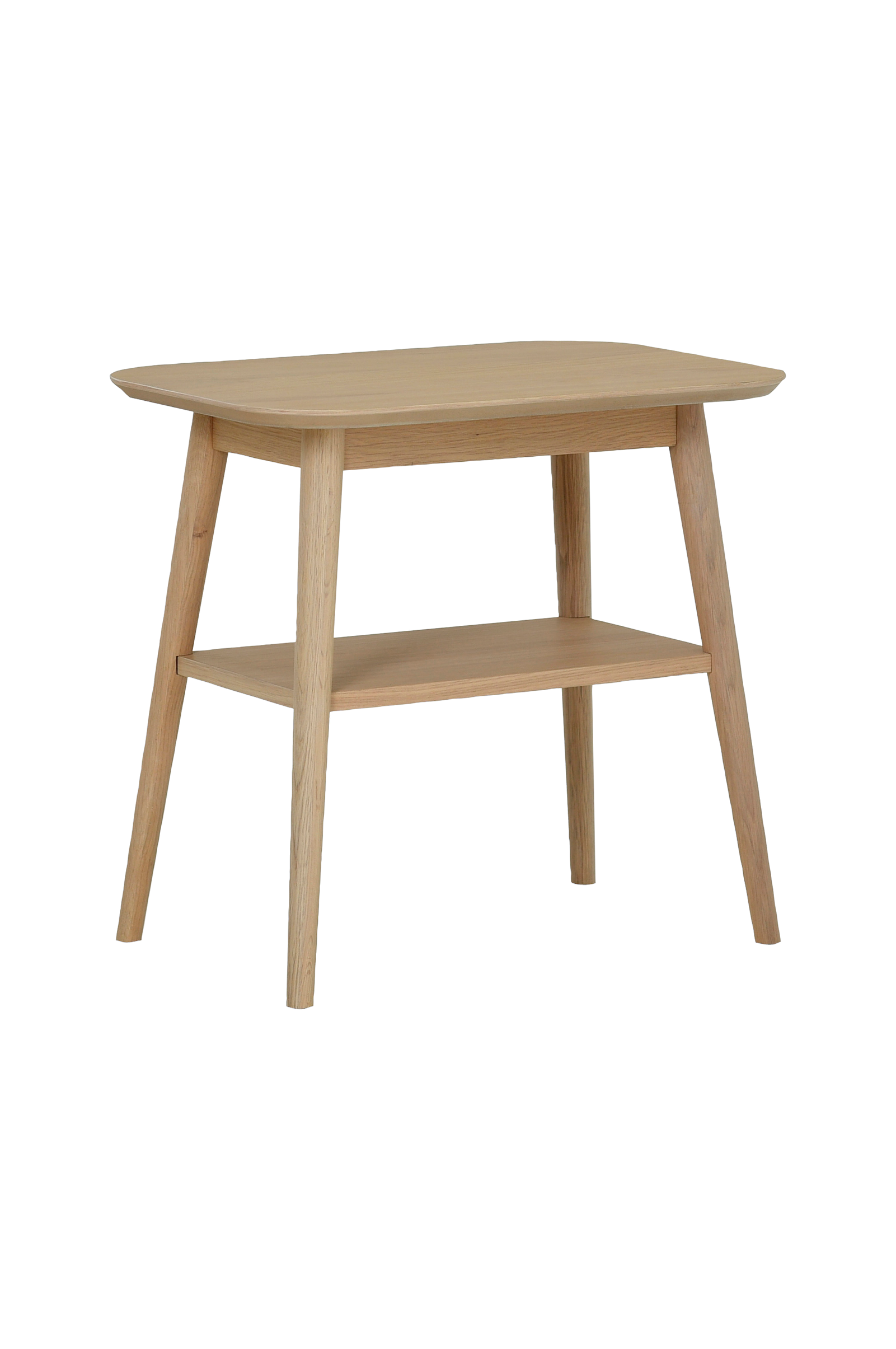Ett sidobord i lackerad ekfanér med en nedre hylla. bordet står på fyra avsmalnande ben, vilket ger det en elegant och minimalistisk design.Artikeln kräver montering.